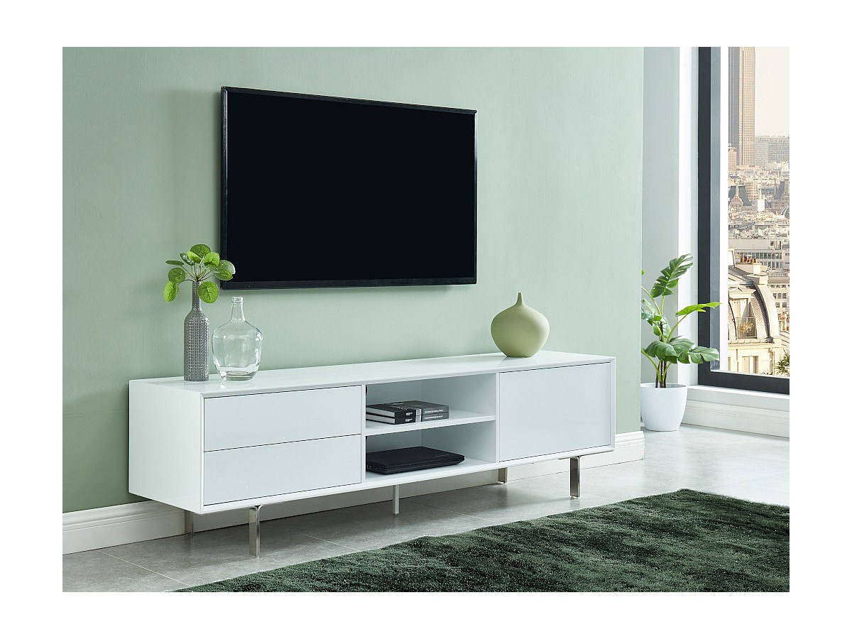 Mobile TV 1 anta e 2 cassetti MDF e metallo Bianco - CARLUTA