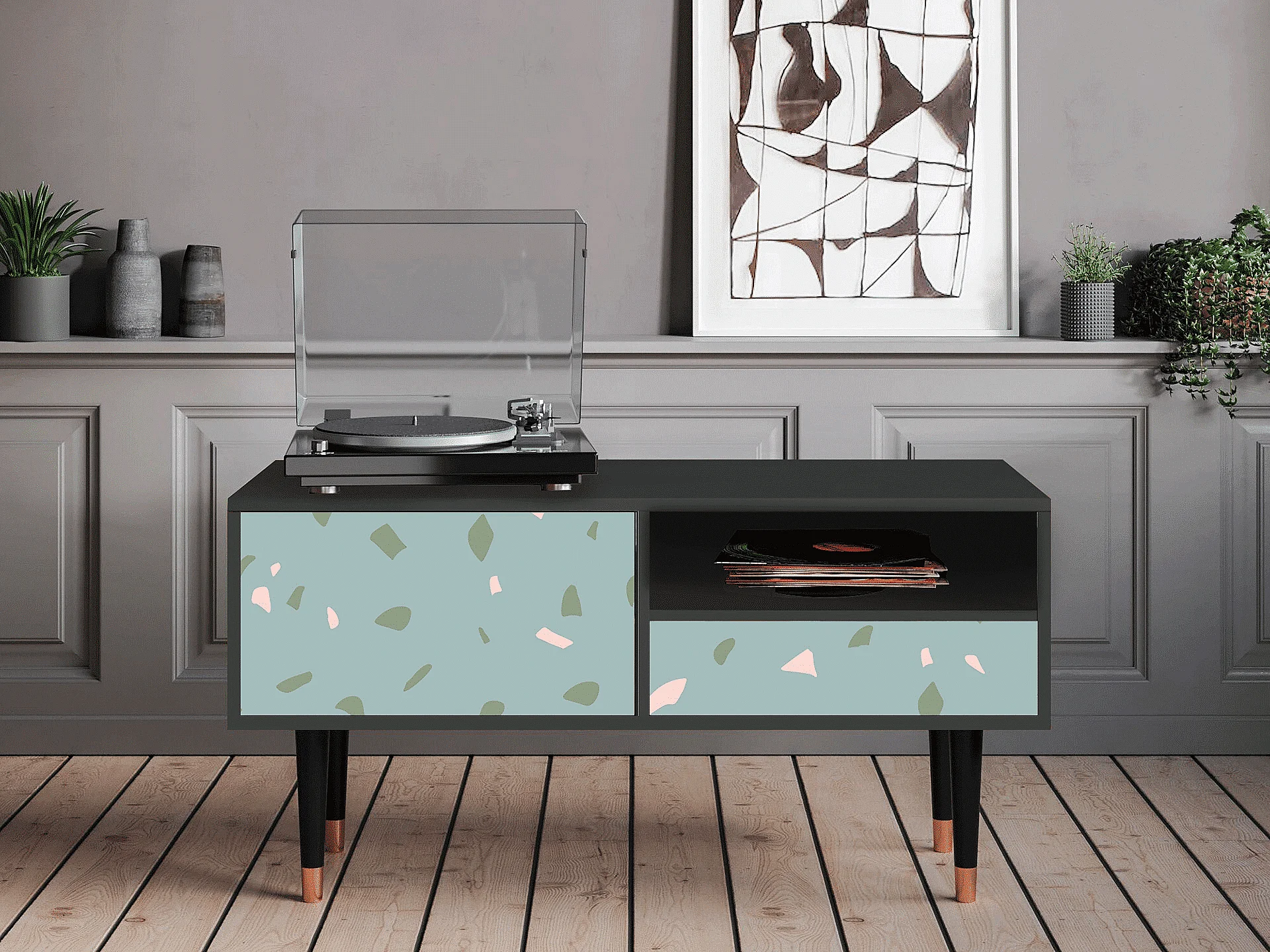 Mobile TV - 115х59х48 cm - T3 - Blue Drops, Antracite