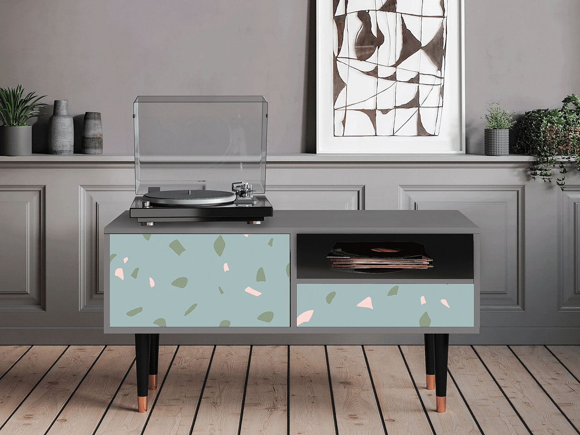 Mobile TV - 115х59х48 cm - T3 - Blue Drops, Grigio