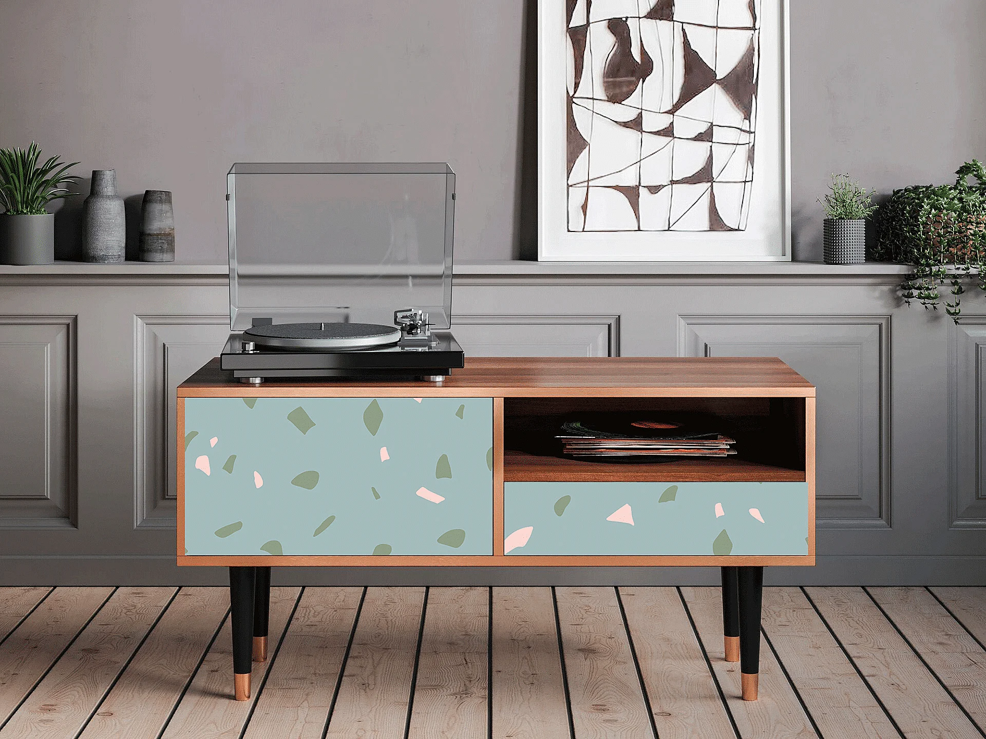 Mobile TV - 115х59х48 cm - T3 - Blue Drops, Noce