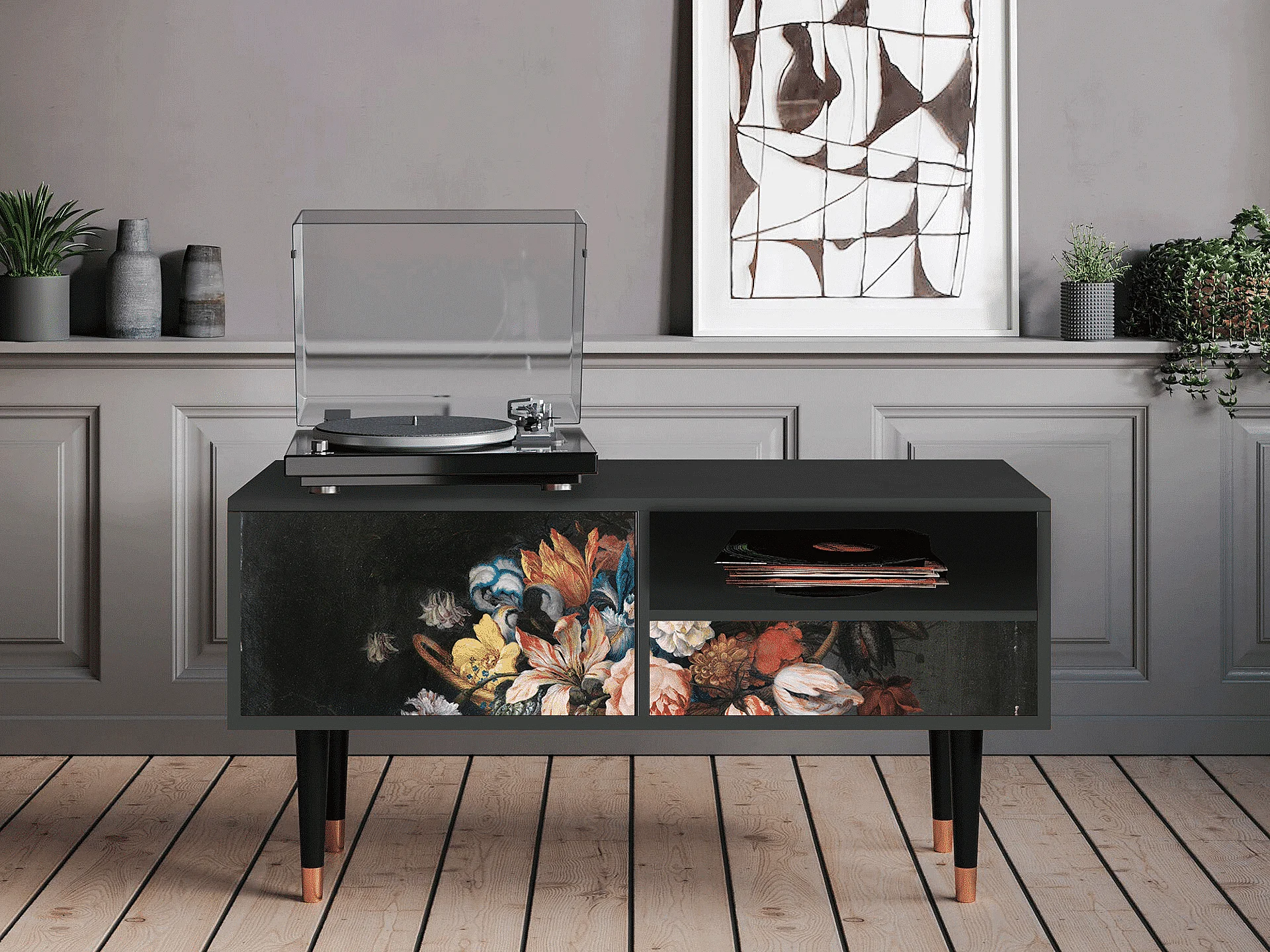 Mobile TV - 115х59х48 cm - T3 - Still Life with Flowers, Antracite