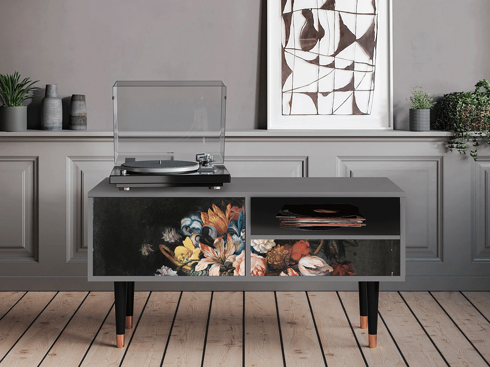 Mobile TV - 115х59х48 cm - T3 - Still Life with Flowers, Grigio
