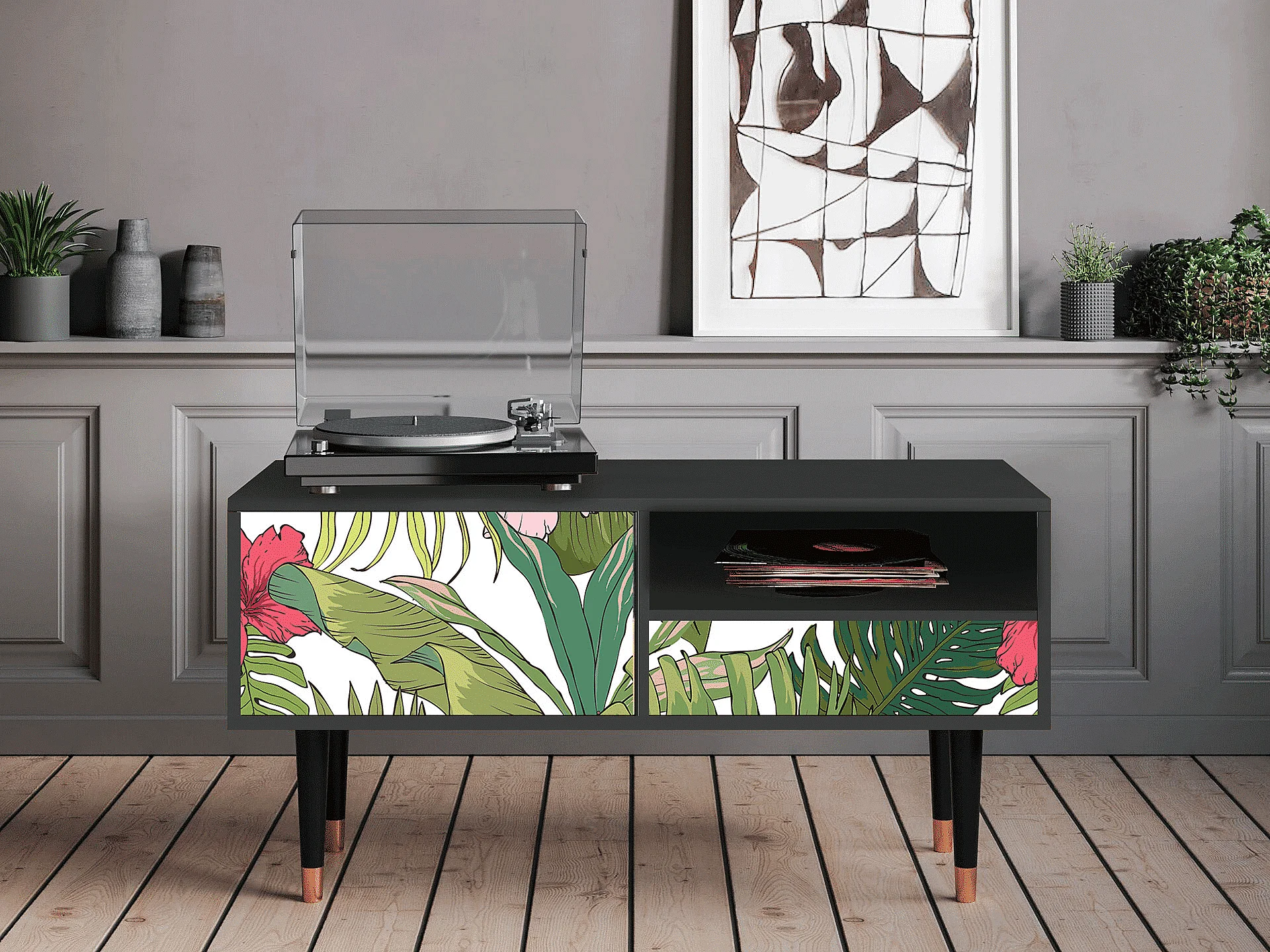 Mobile TV - 115х59х48 cm - T3 - Verdant Tropics, Antracite