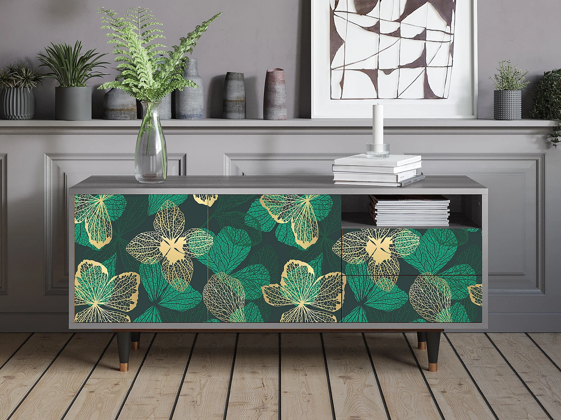 Mobile TV - 125х56х41 cm - T7 - Green Flower, Grigio