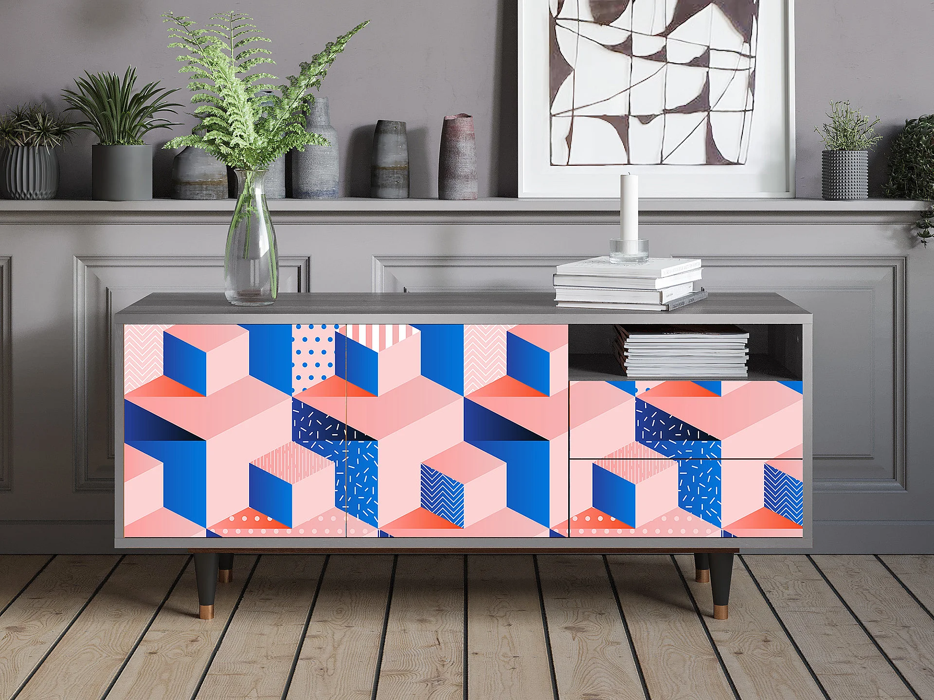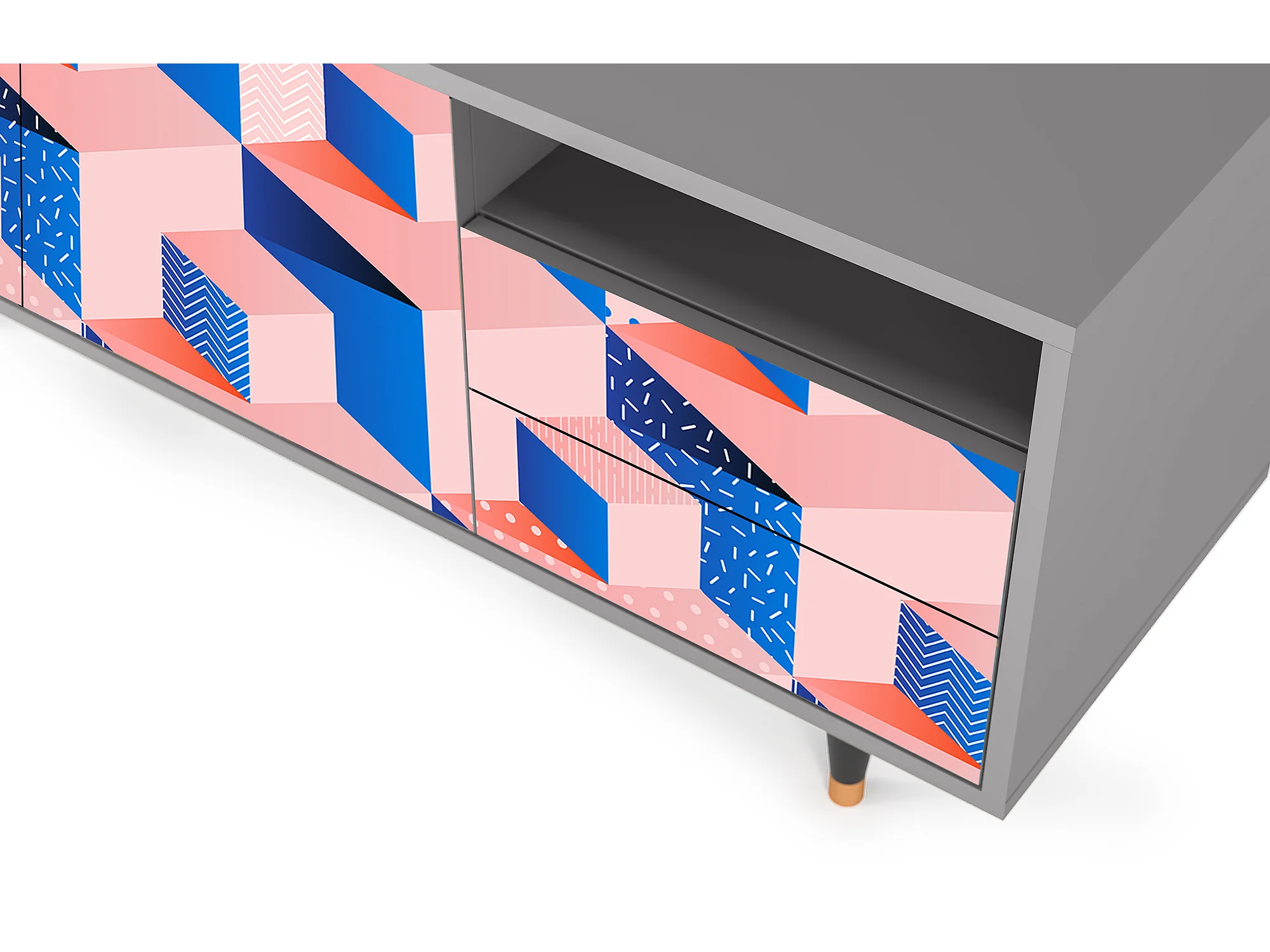 Mobile TV - 125х56х41 cm - T7 - Pinky Squares, Grigio