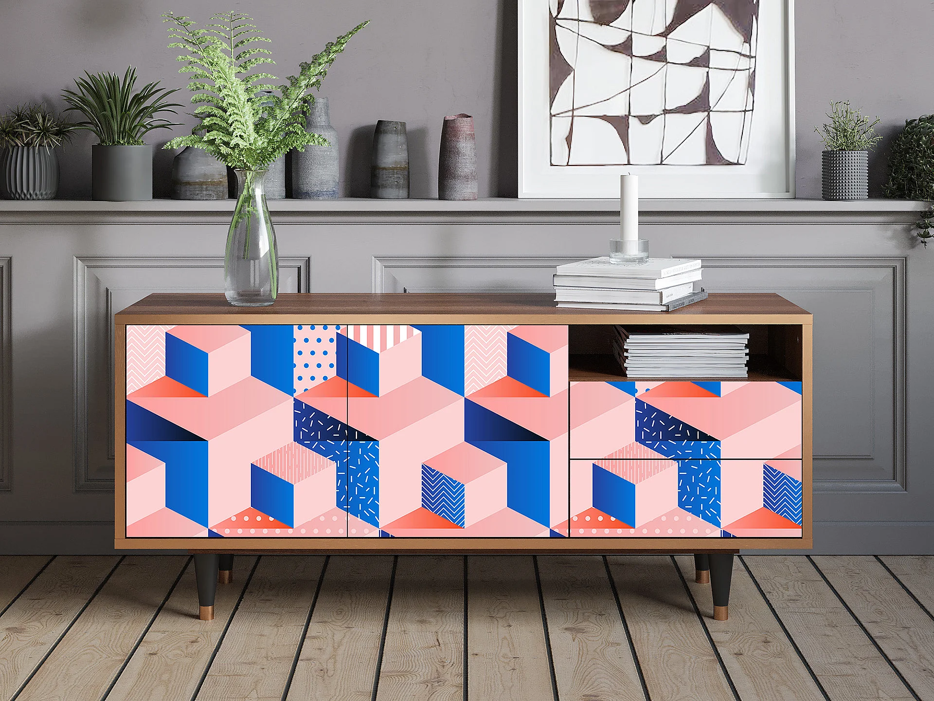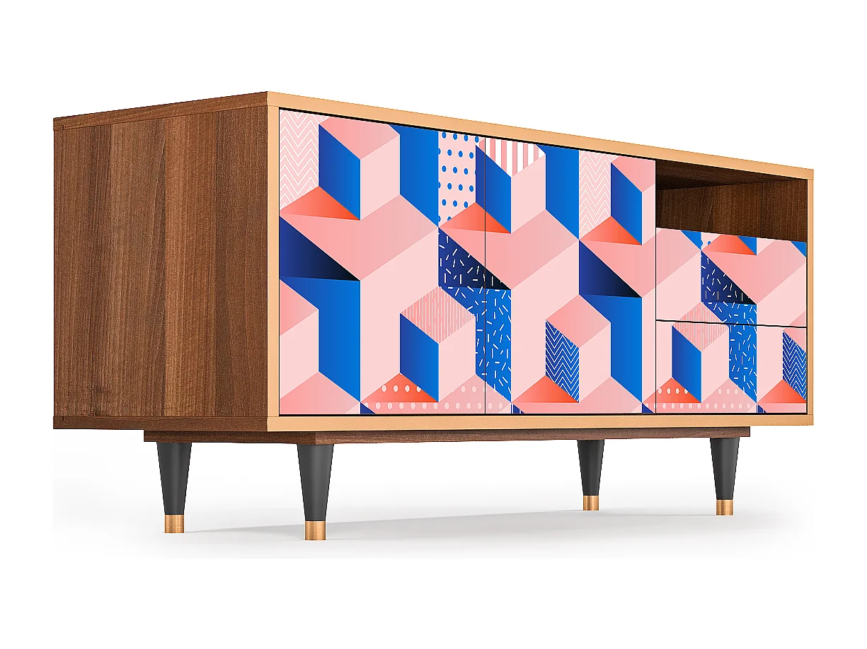 Mobile TV - 125х56х41 cm - T7 - Pinky Squares, Noce