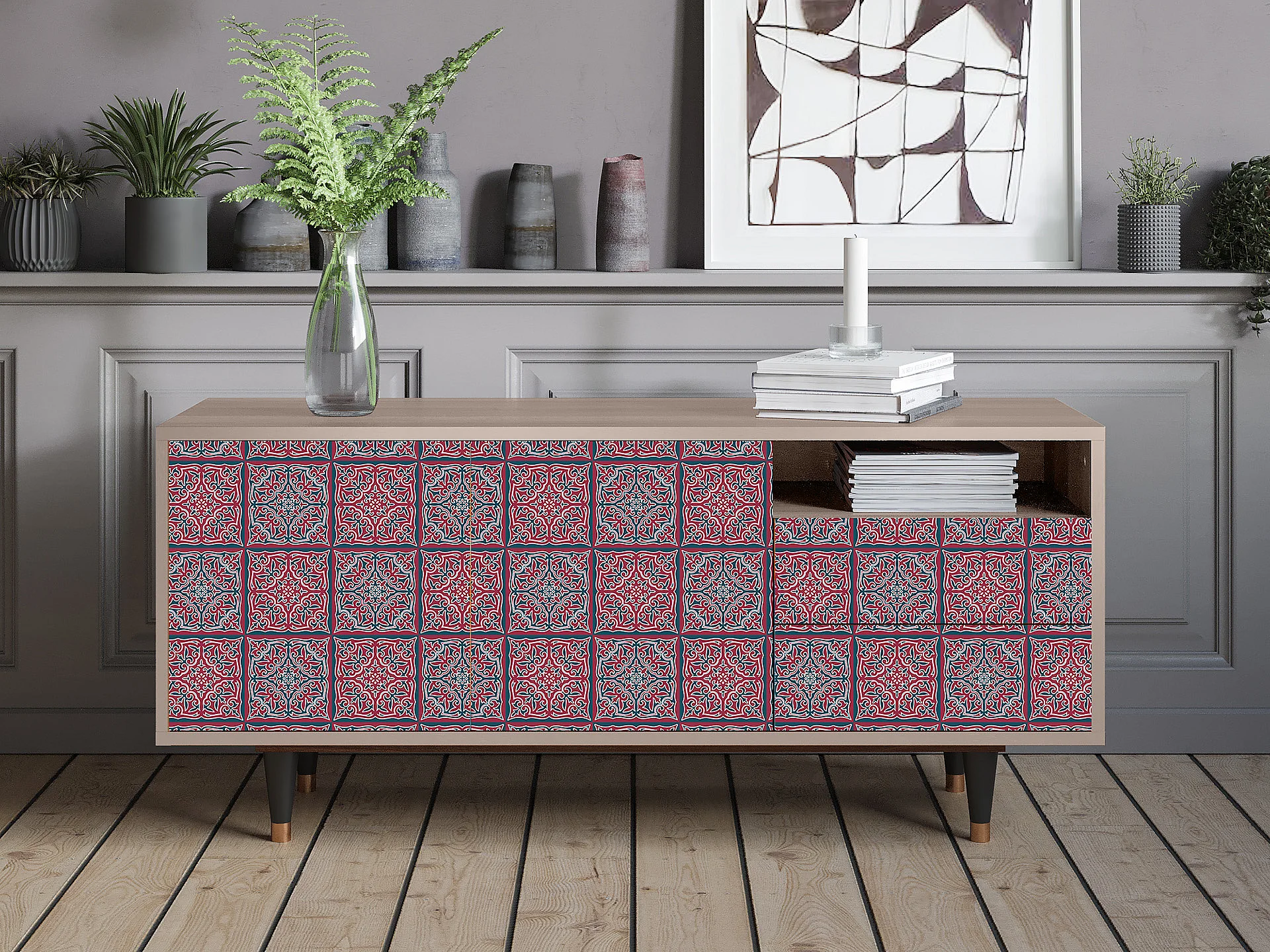 Mobile TV - 125х56х41 cm - T7 - Riviera Mosaic, Latte