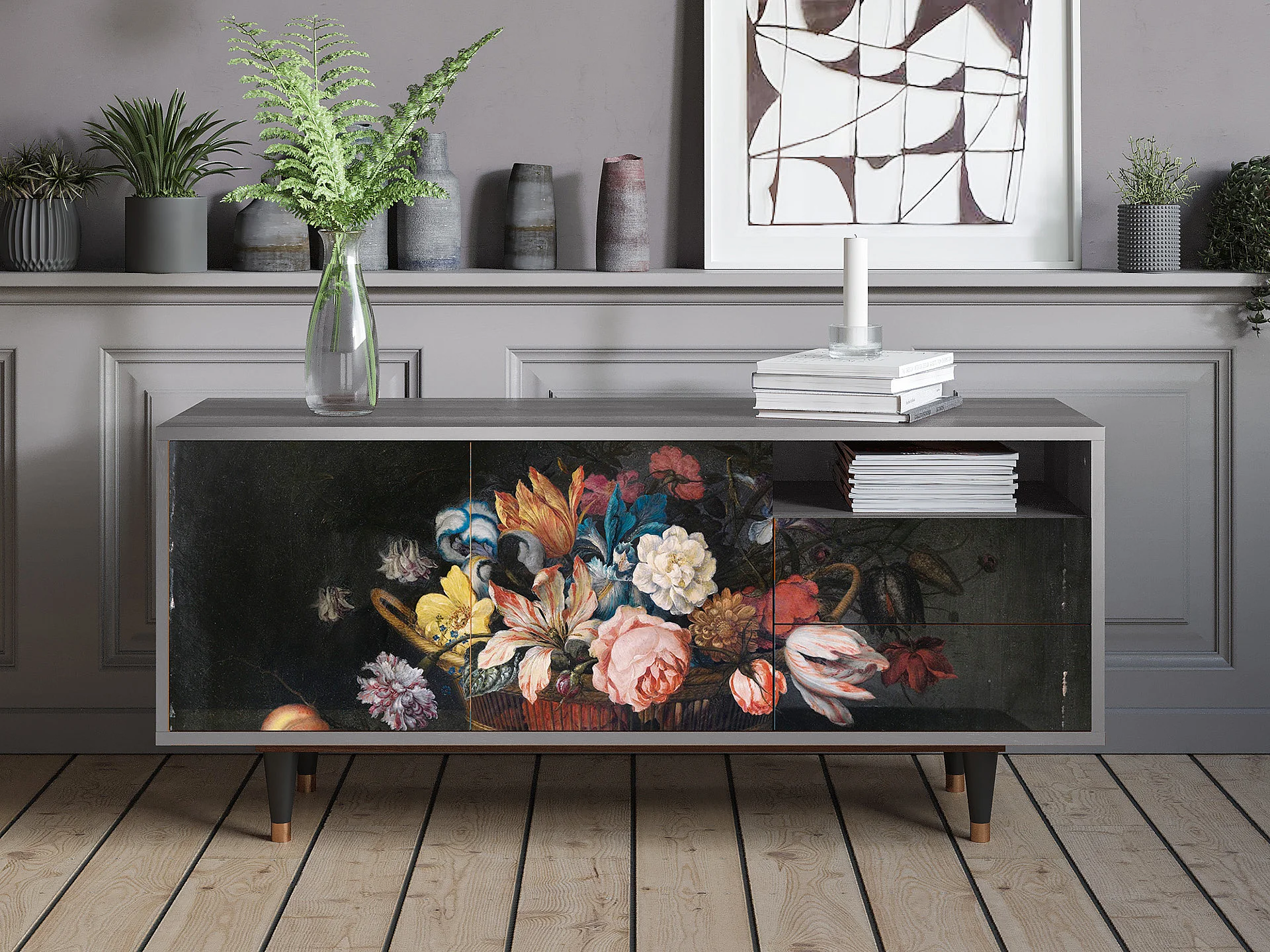 Mobile TV - 125х56х41 cm - T7 - Still Life with Flowers, Grigio
