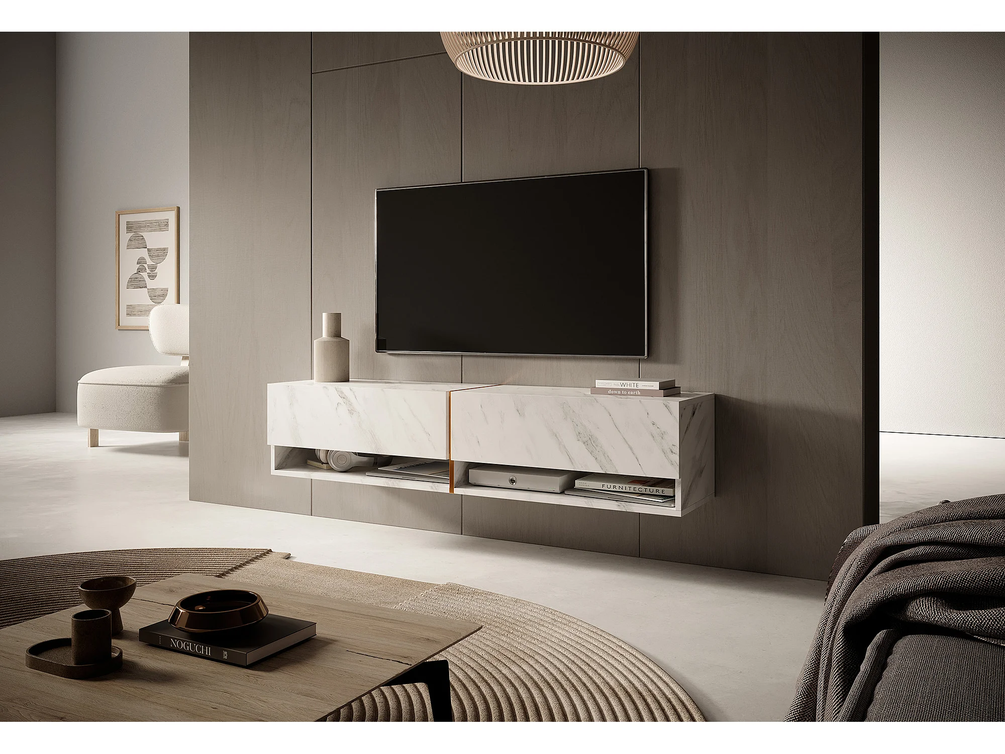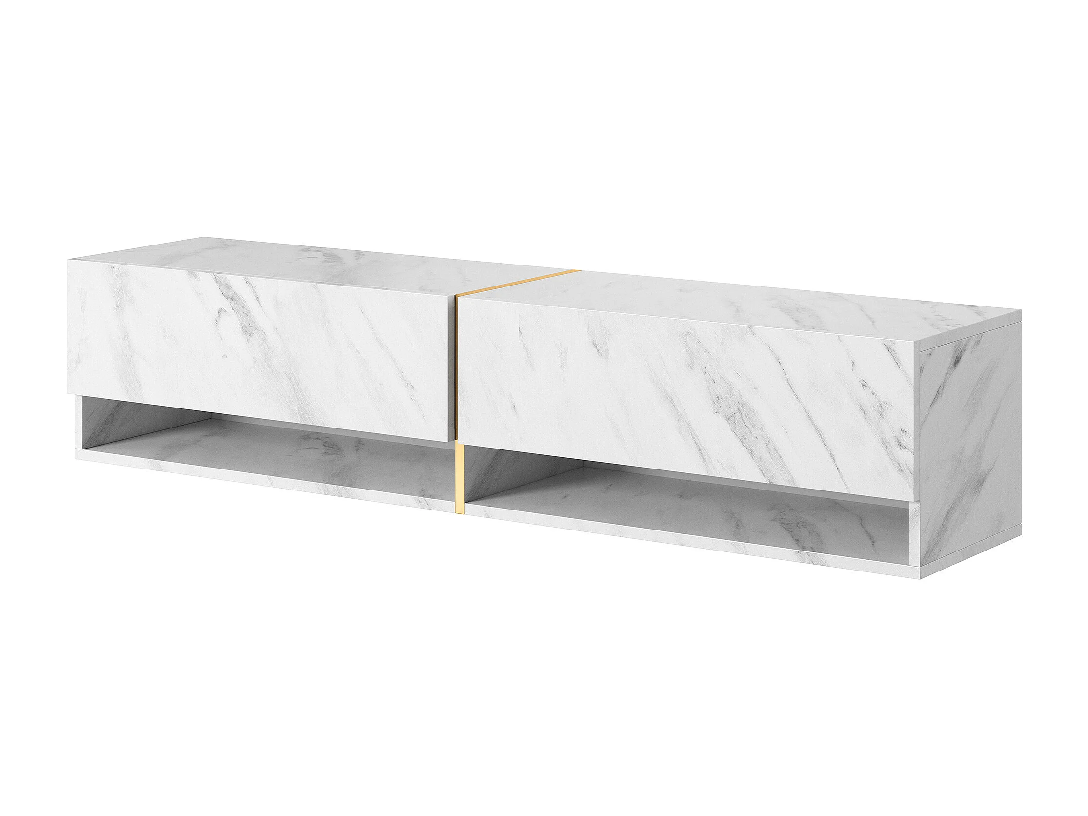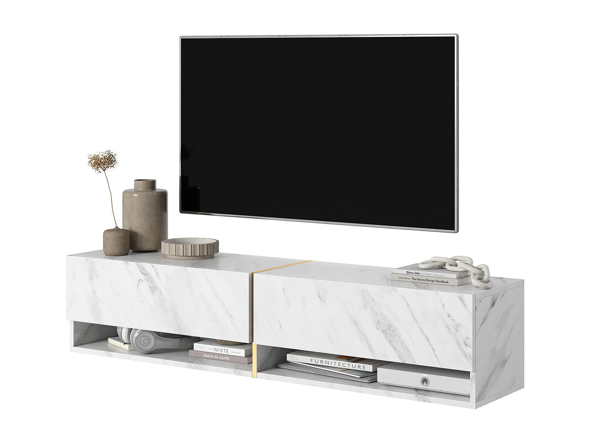 Mobile TV - 140 cm - pannelo laminato - colore: marmo bianco + striscia dorata - Mirrgo