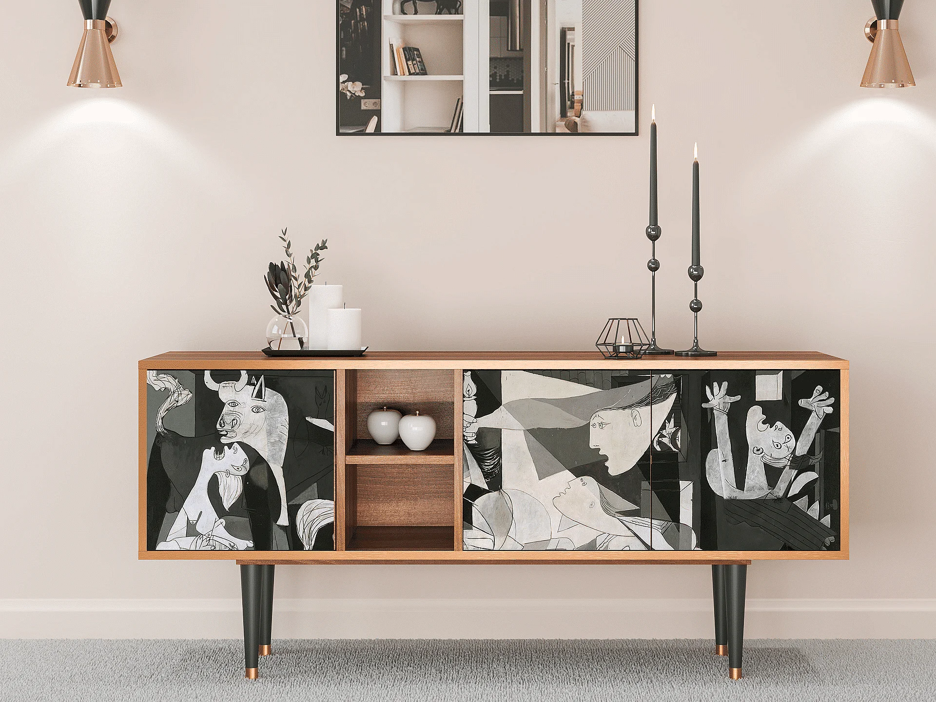 Mobile TV - 150х69х41 cm - T5 - Guernica by Picasso, Noce
