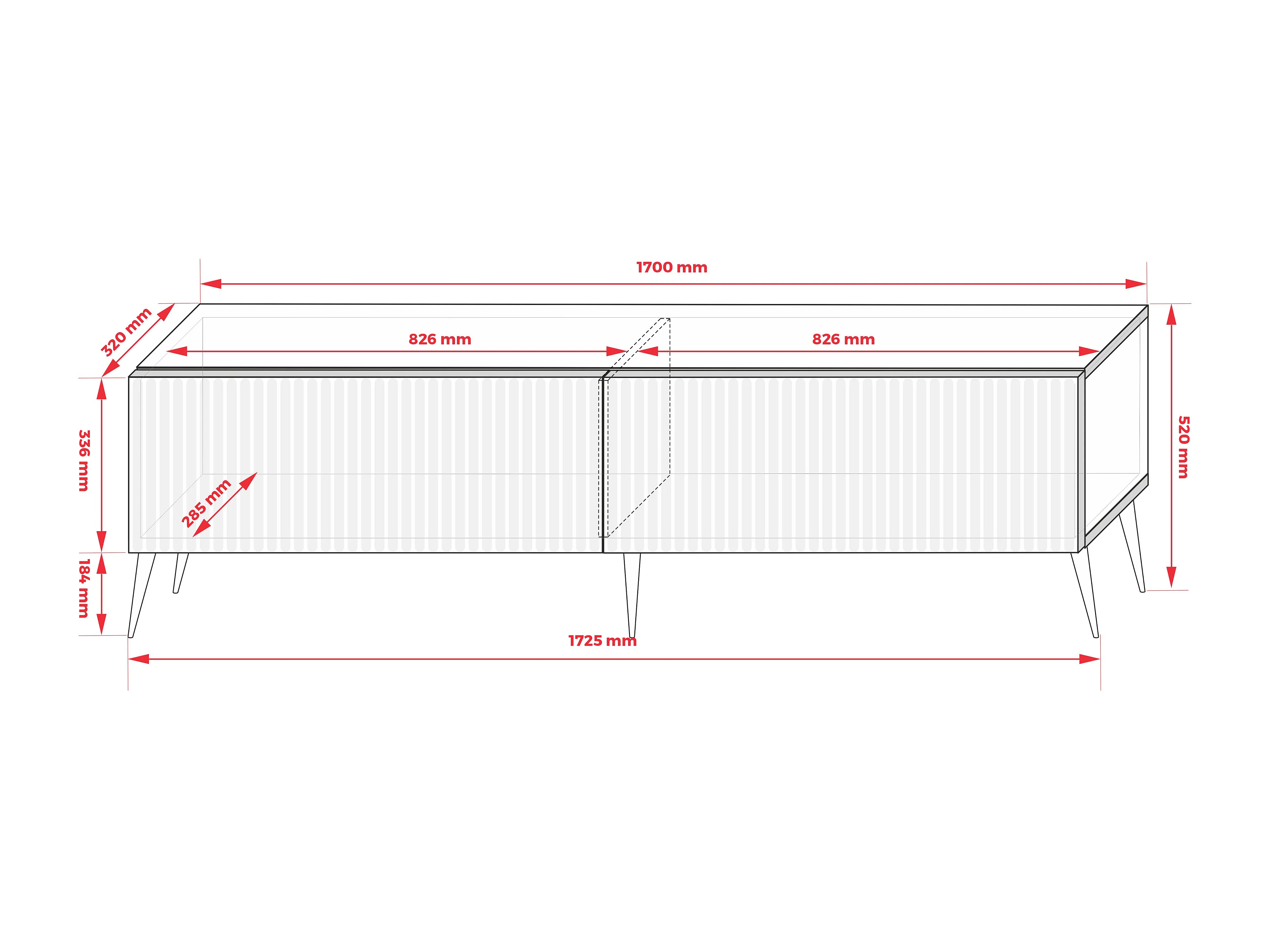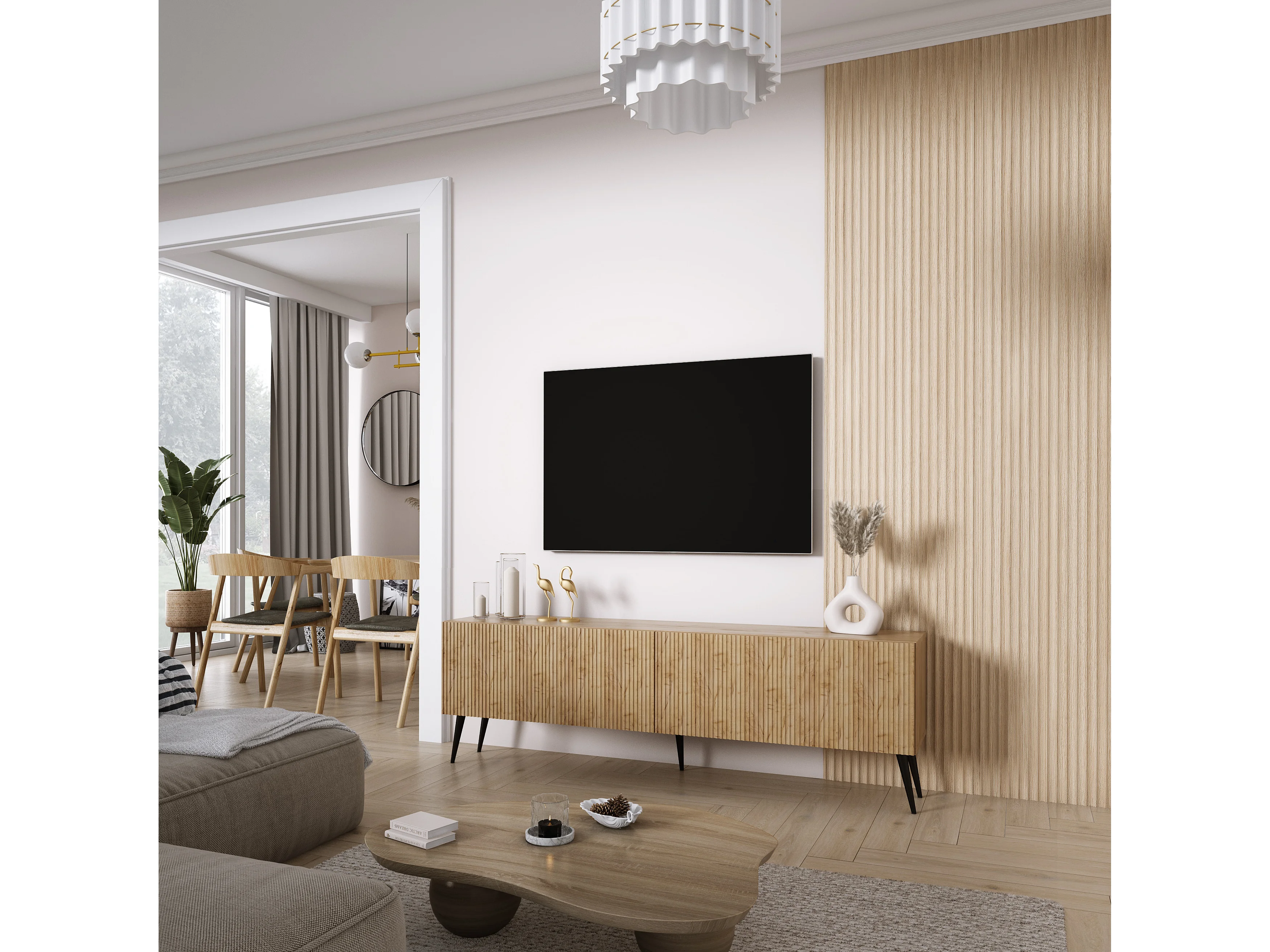 Mobile TV 170, frontali scanalati, Rovere Craft, gambe inclinate nere, 170 × 32 × 52 cm