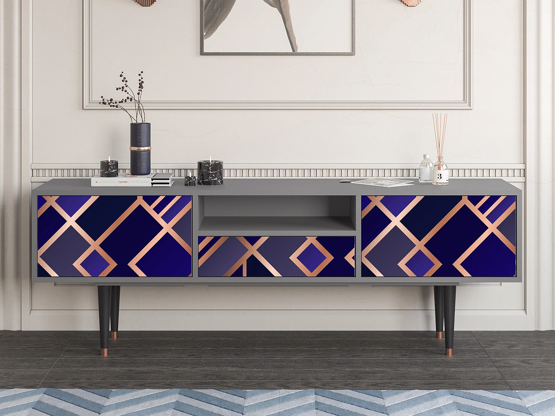 Mobile TV - 170х59х41 cm - T6 - Aquamarine Getsby, Grigio