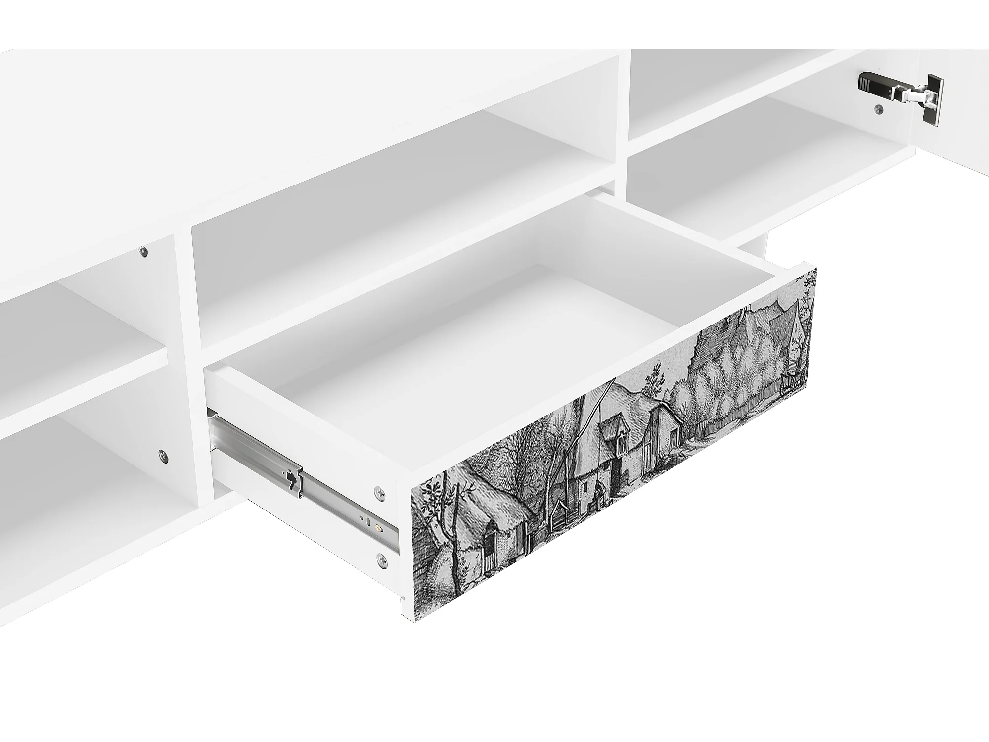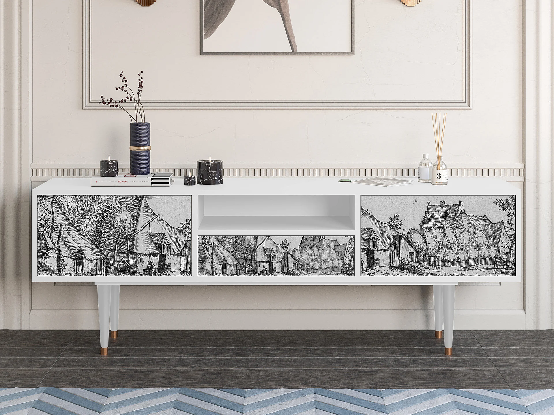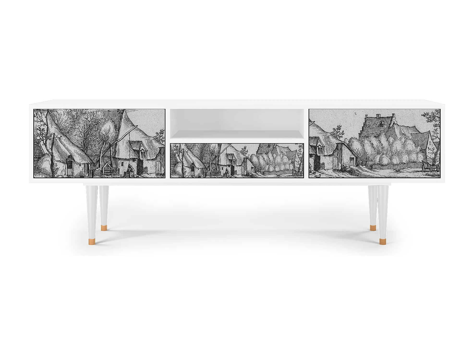 Mobile TV - 170х59х41 cm - T6 - Farms in a Village, Bianco