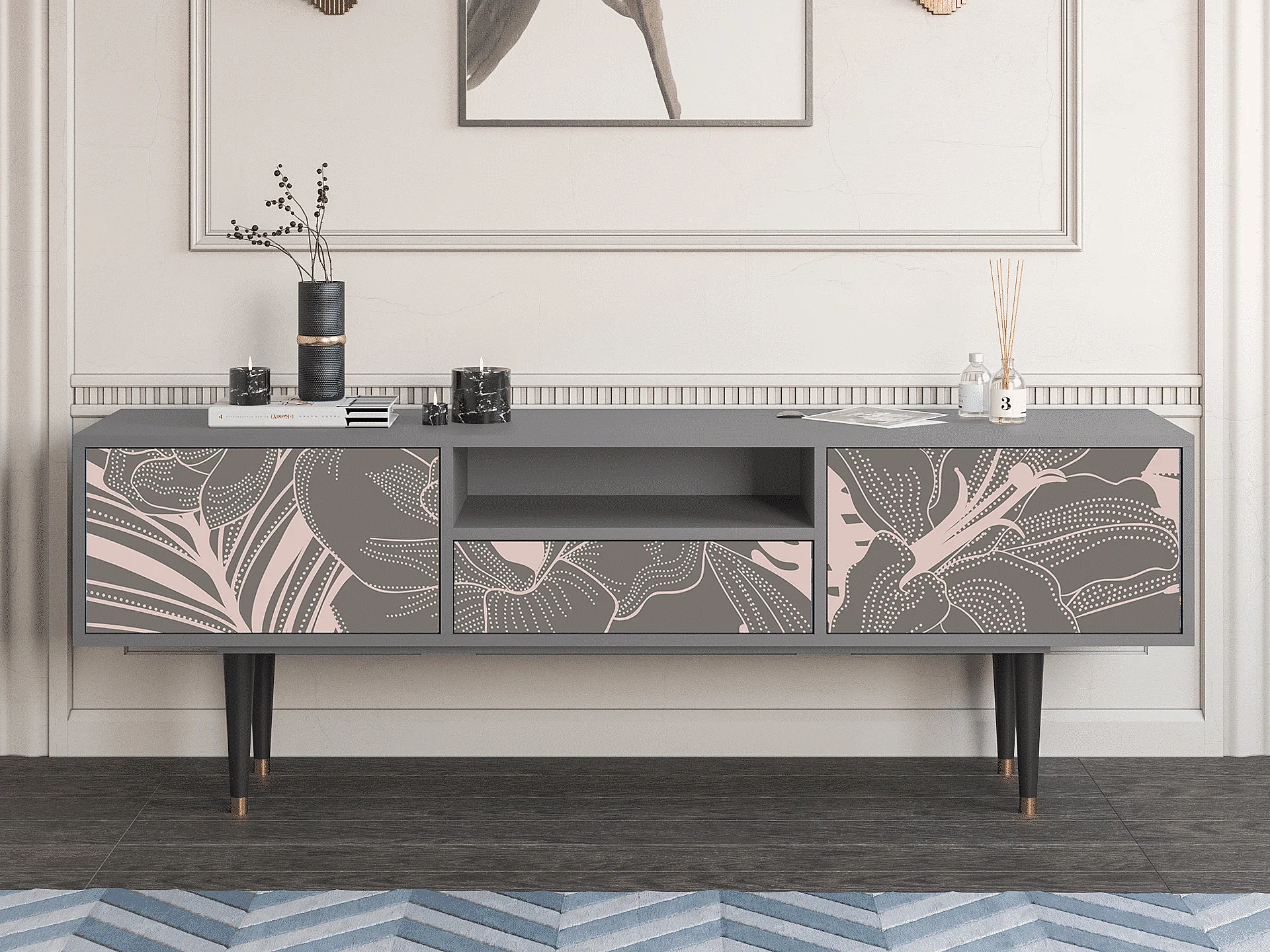 Mobile TV - 170х59х41 cm - T6 - Issabelline Flower, Grigio