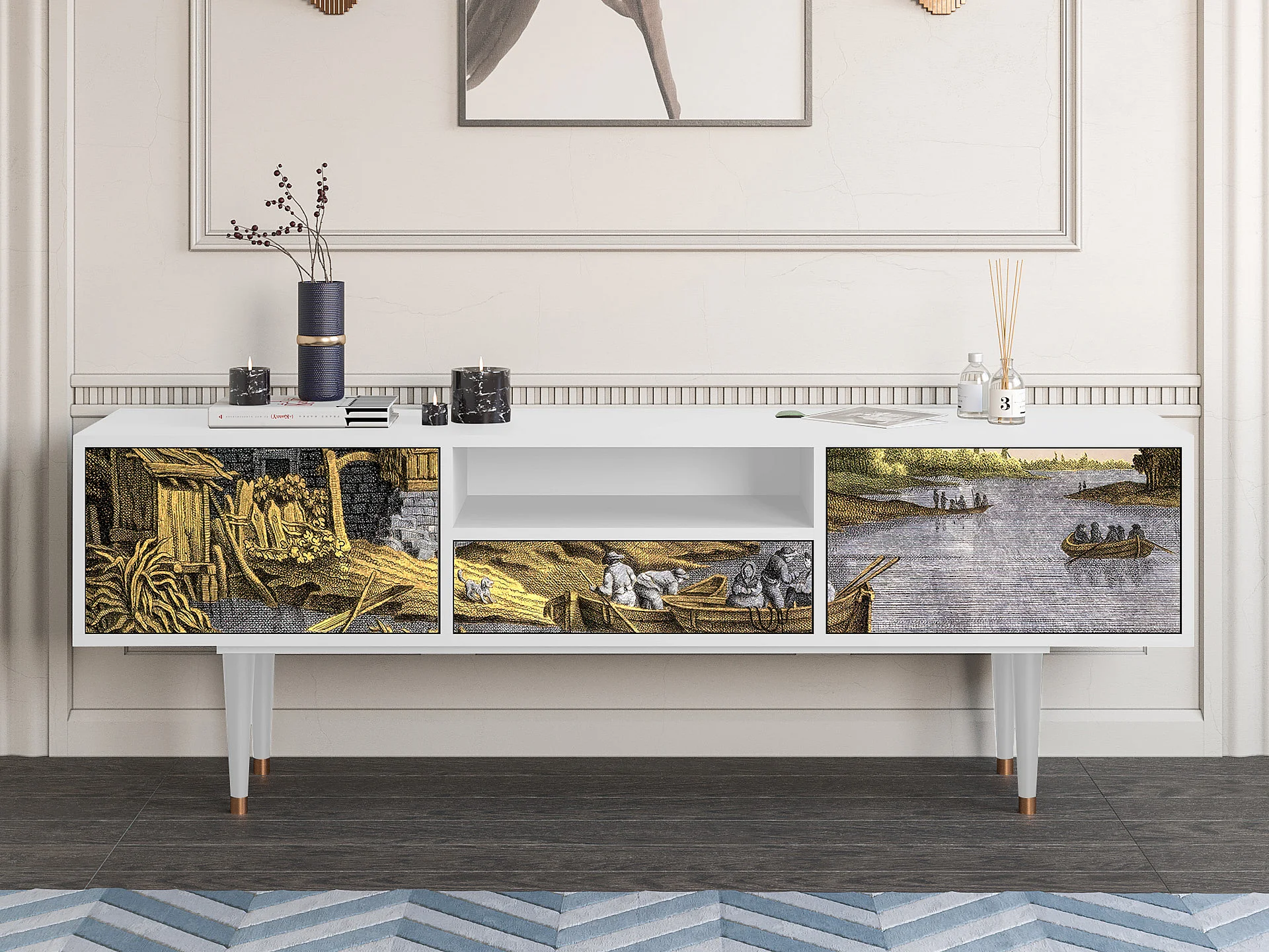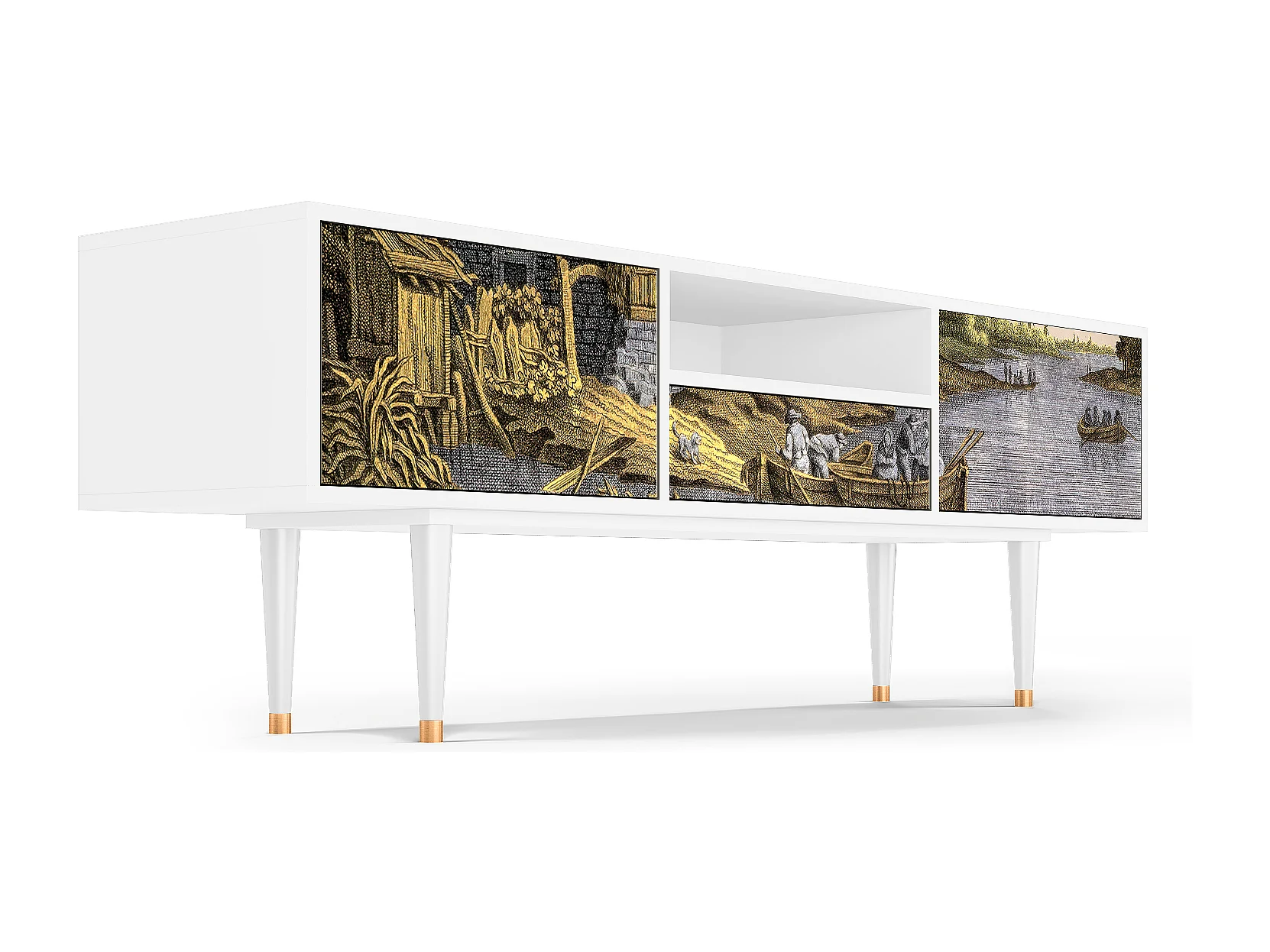 Mobile TV - 170х59х41 cm - T6 - Mill along a River, Bianco