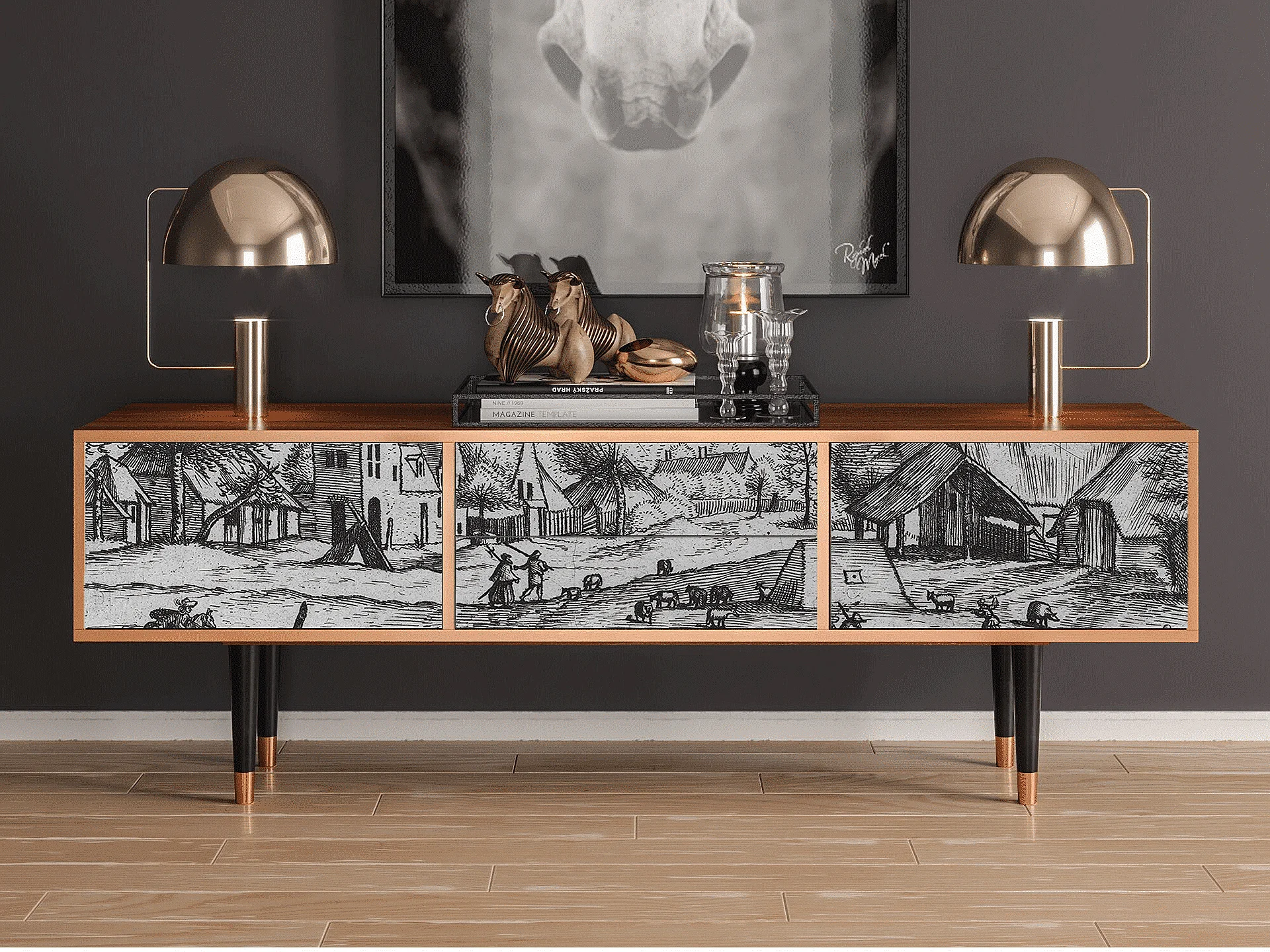 Mobile TV - 170х59х48 cm - T4 - Country Village, Noce