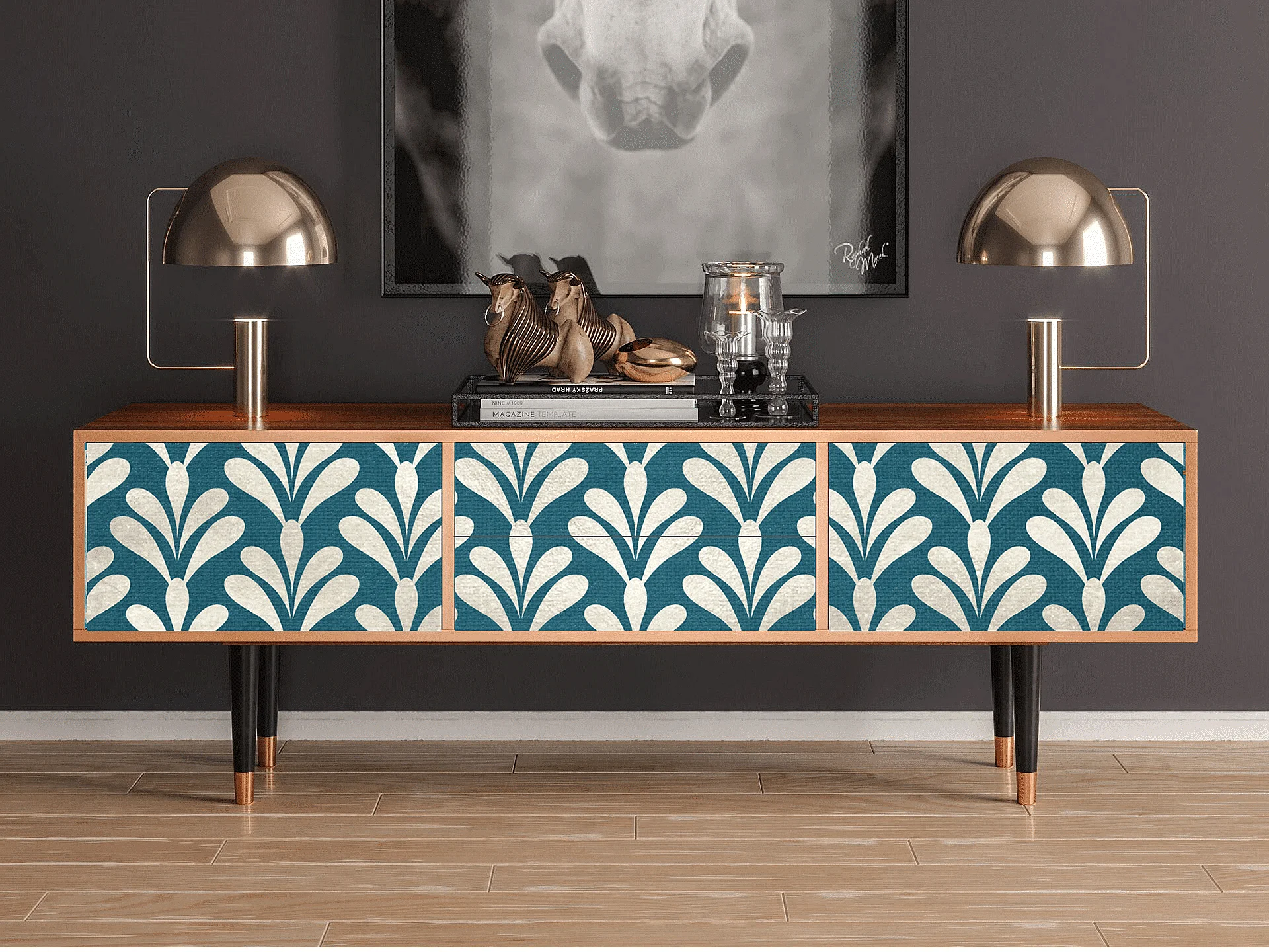 Mobile TV - 170х59х48 cm - T4 - Milky Tears, Noce