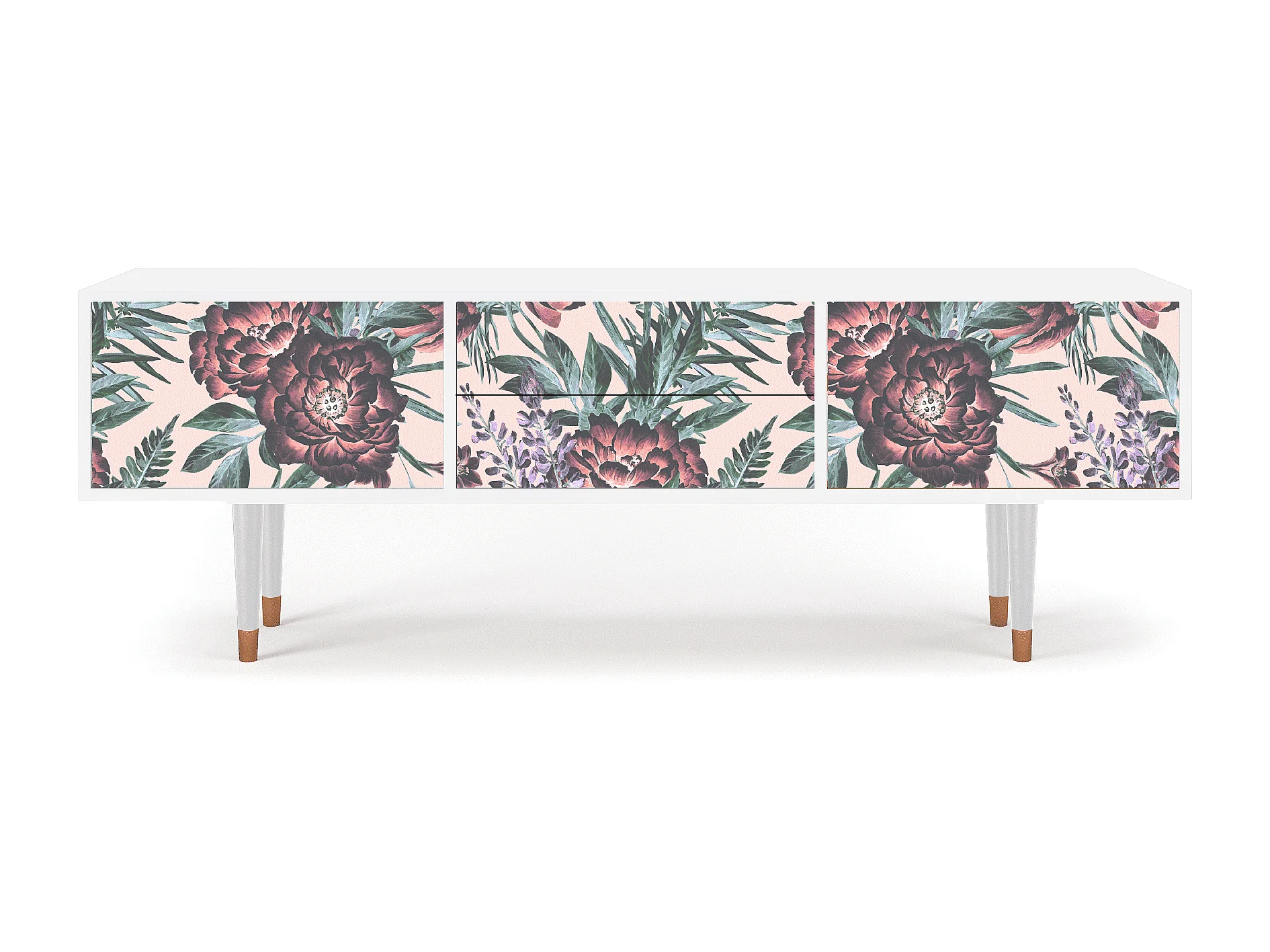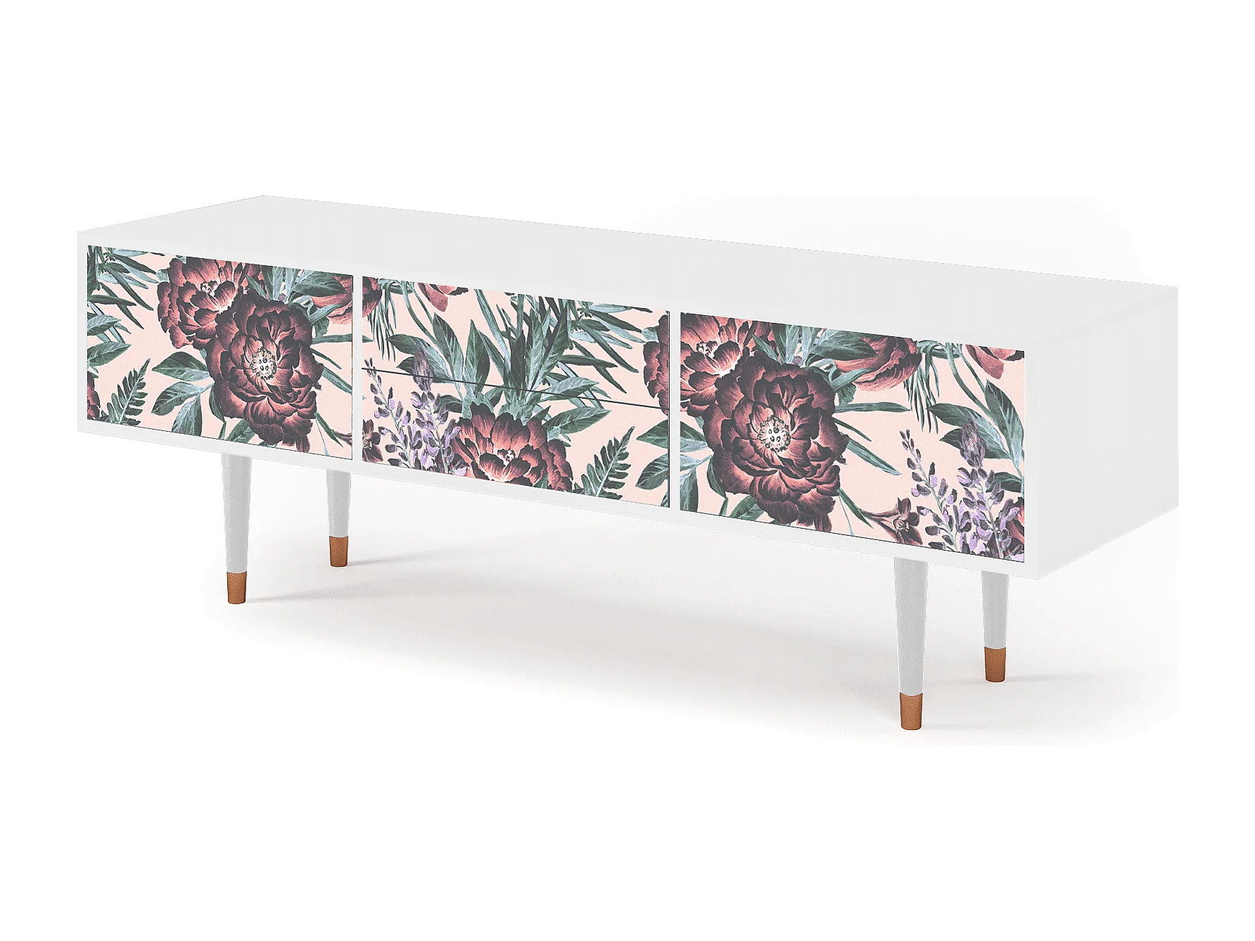 Mobile TV - 170х59х48 cm - T4 - Peach Peonies, Bianco