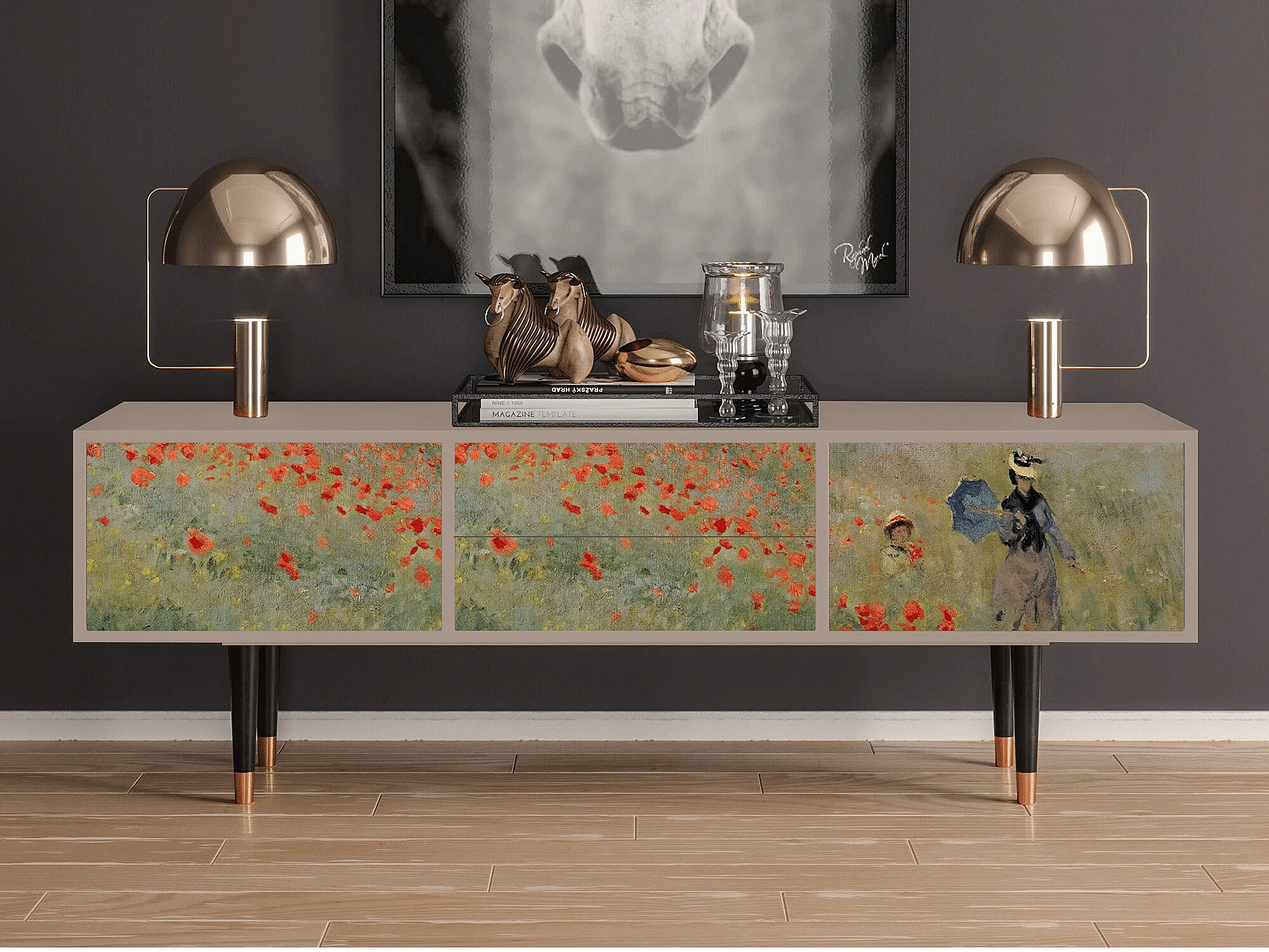 Mobile TV - 170х59х48 cm - T4 - The Poppy Field , Latte