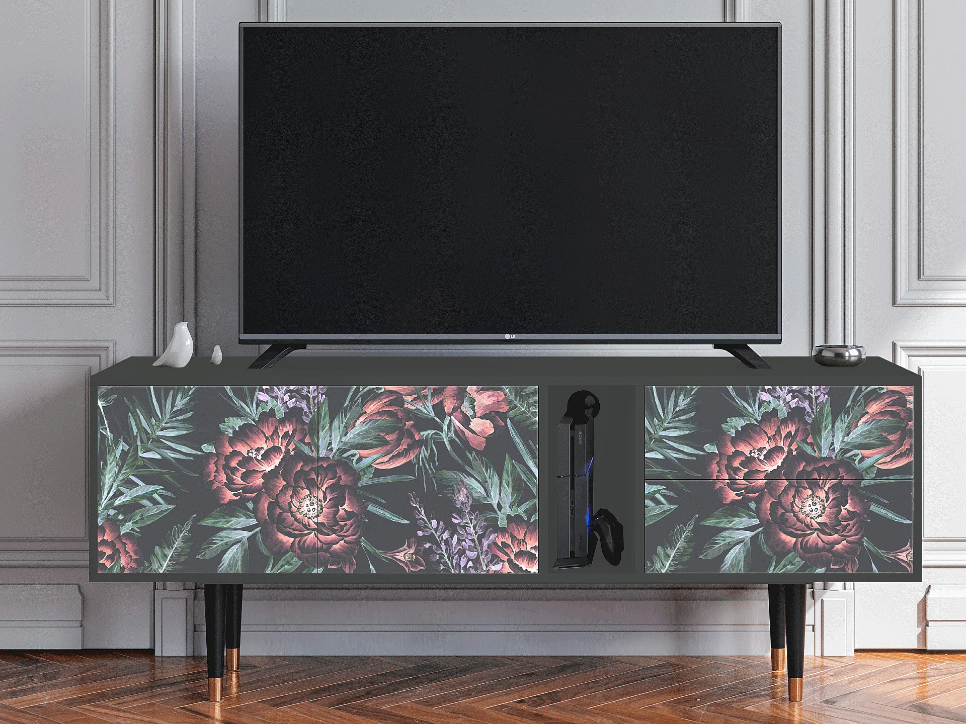 Mobile TV - 170х69х48 cm - T1 - Dark Peonies, Antracite