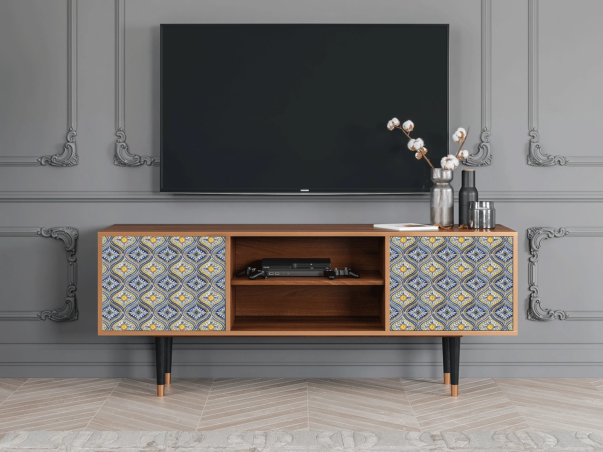 Mobile TV - 170х69х48 cm - T2 - Illusory Pattern, Noce