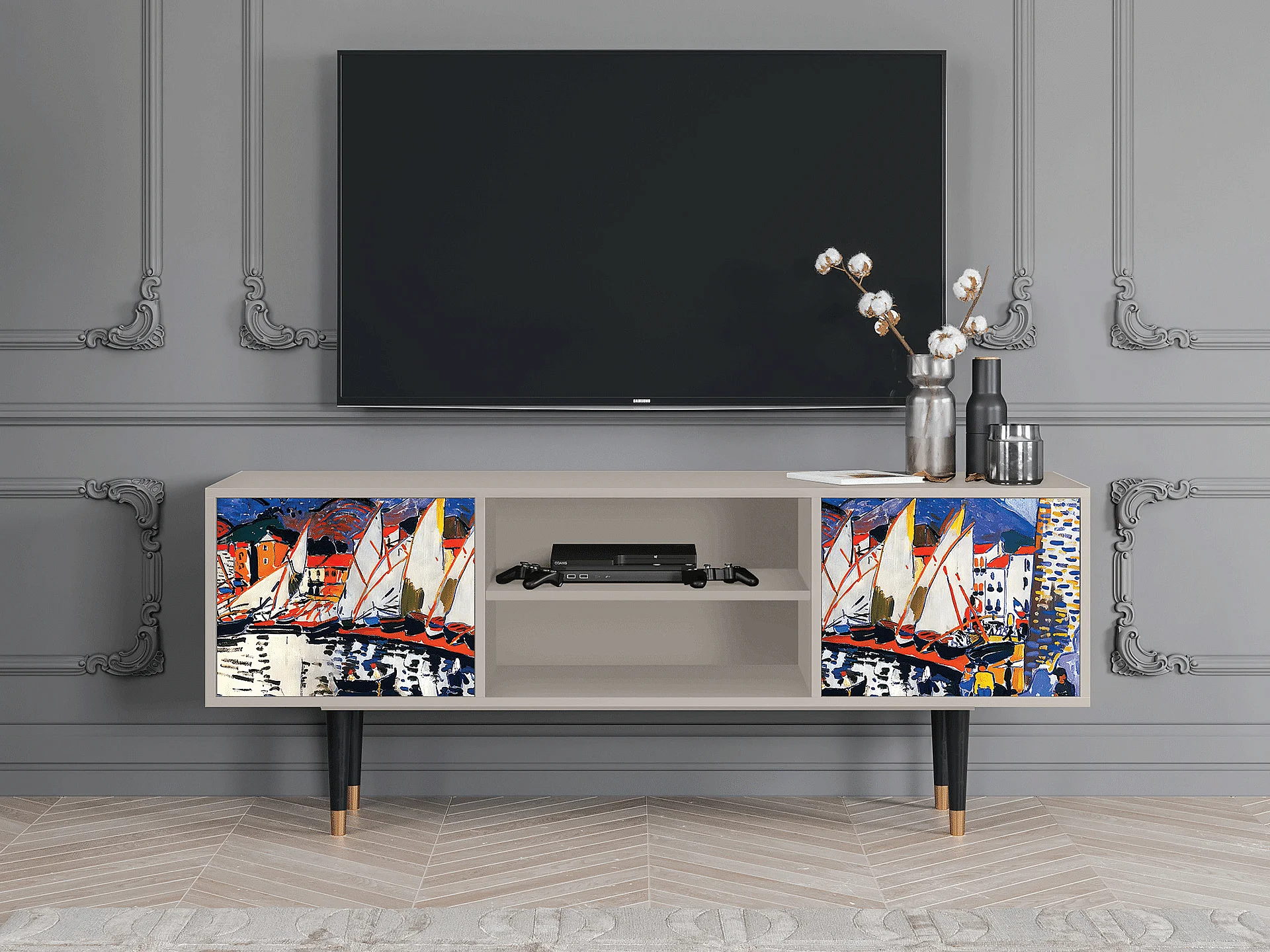 Mobile TV - 170х69х48 cm - T2 - Le Séchage des voiles , Sabbia