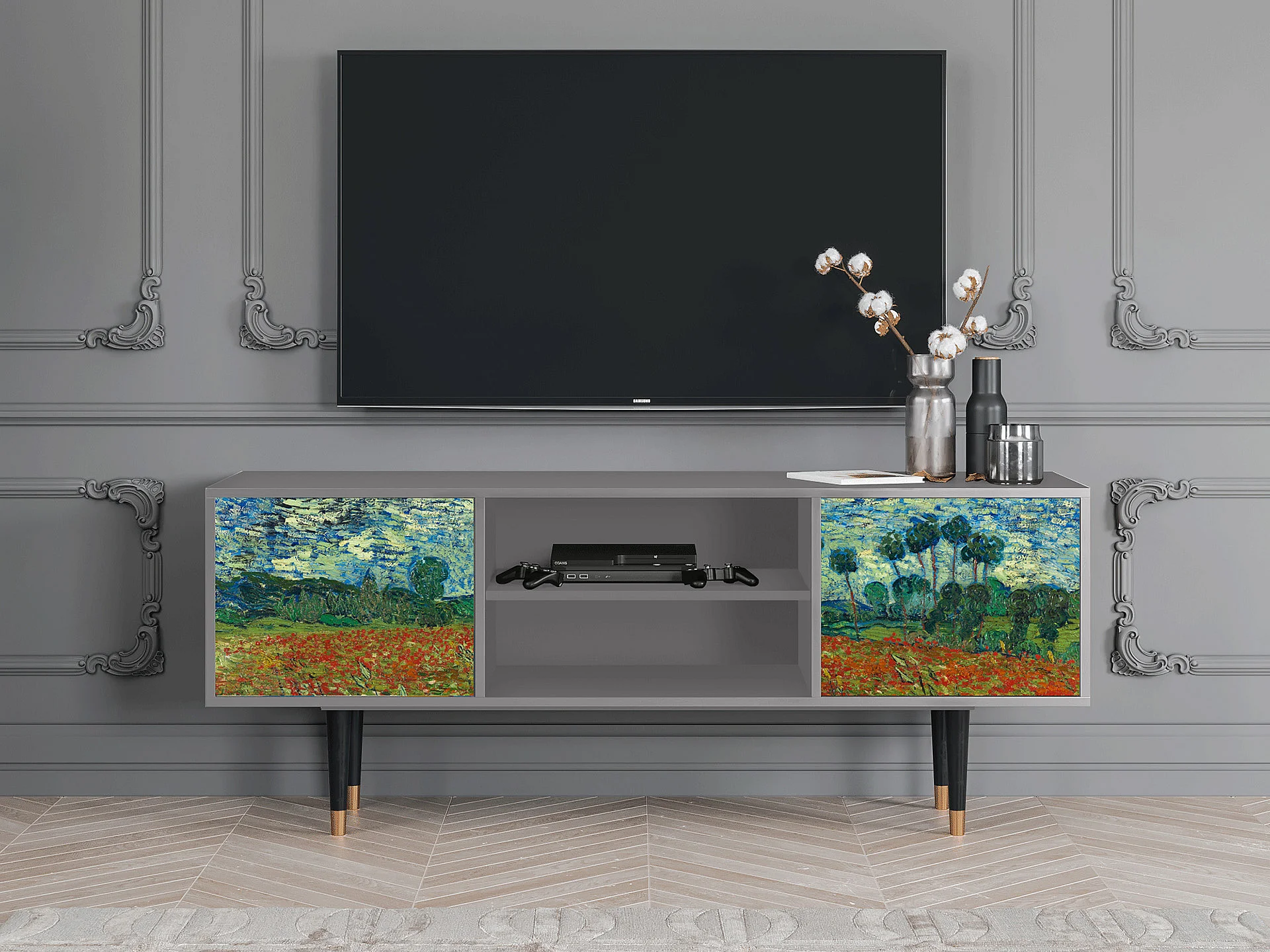 Mobile TV - 170х69х48 cm - T2 - Poppy field by van Gogh, Grigio