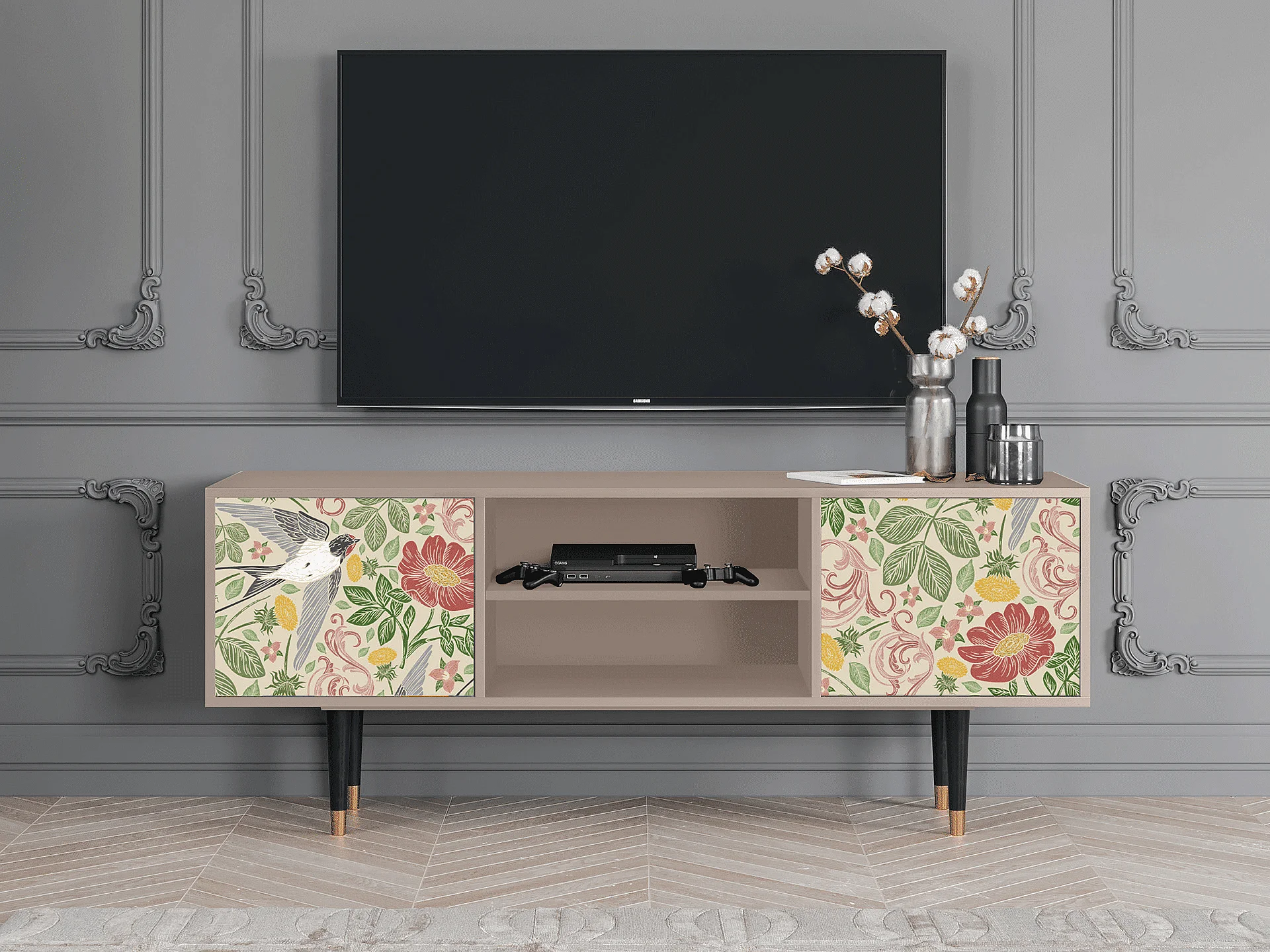 Mobile TV - 170х69х48 cm - T2 - Spring Swallow, Latte