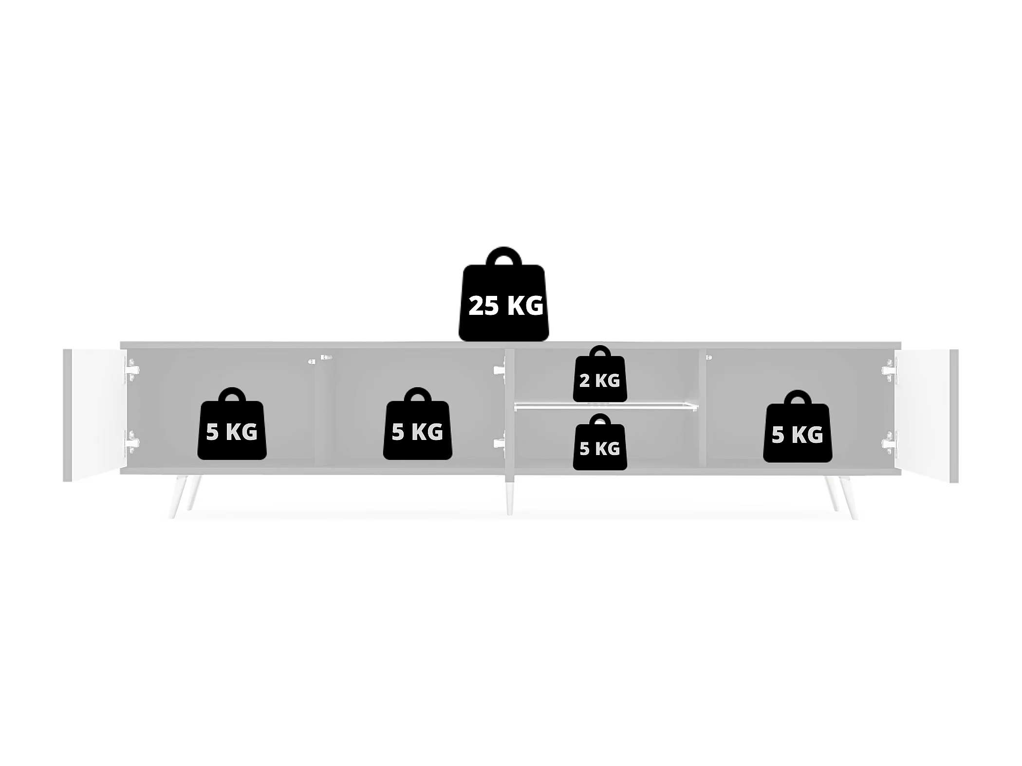 Mobile TV 175 cm intreccio viennese su gambe nere - Bello