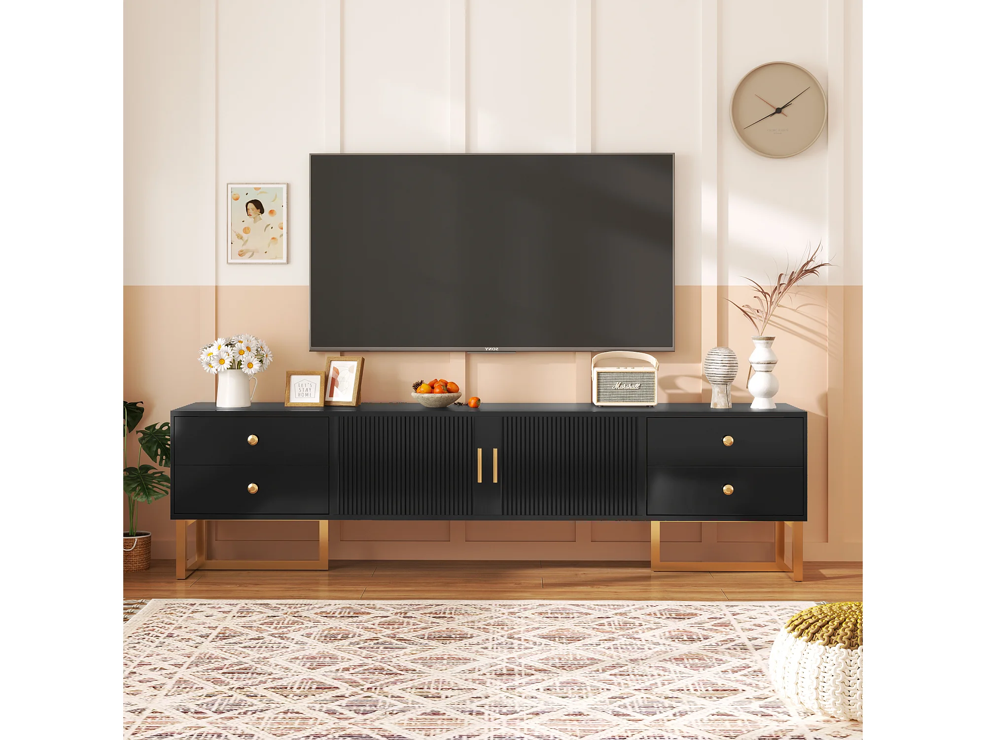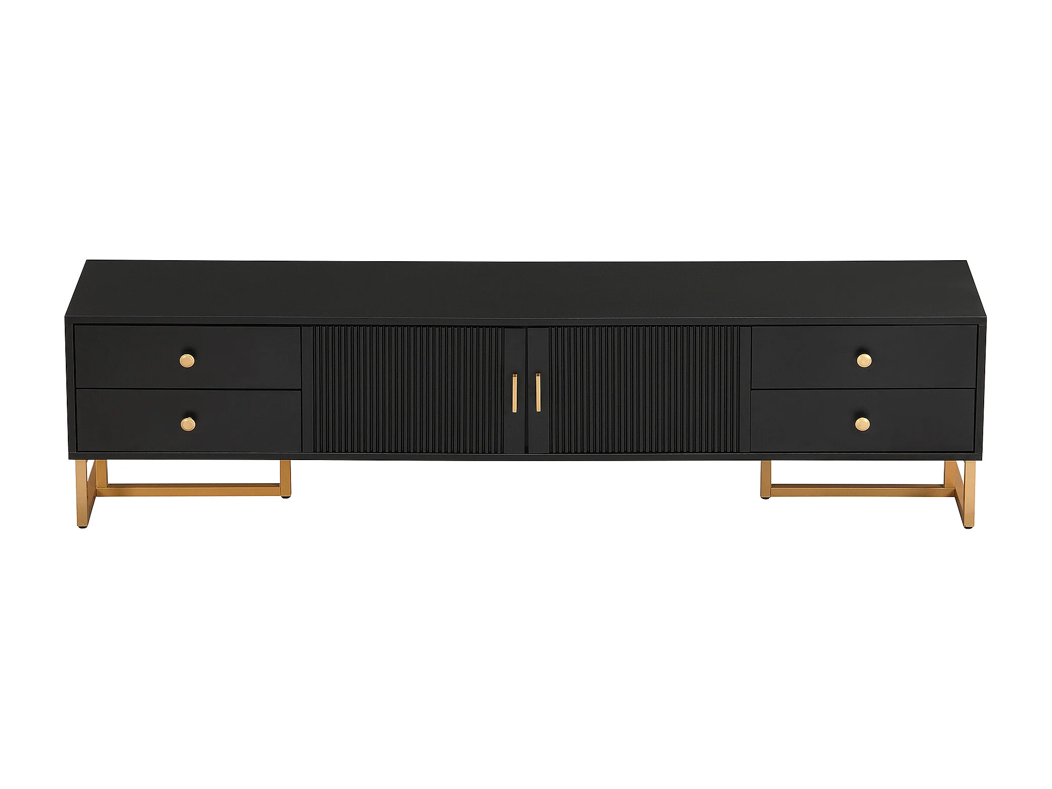 Mobile TV 175 cm MDF nero porte e tiroirs pieds dorés rangement salon moderne