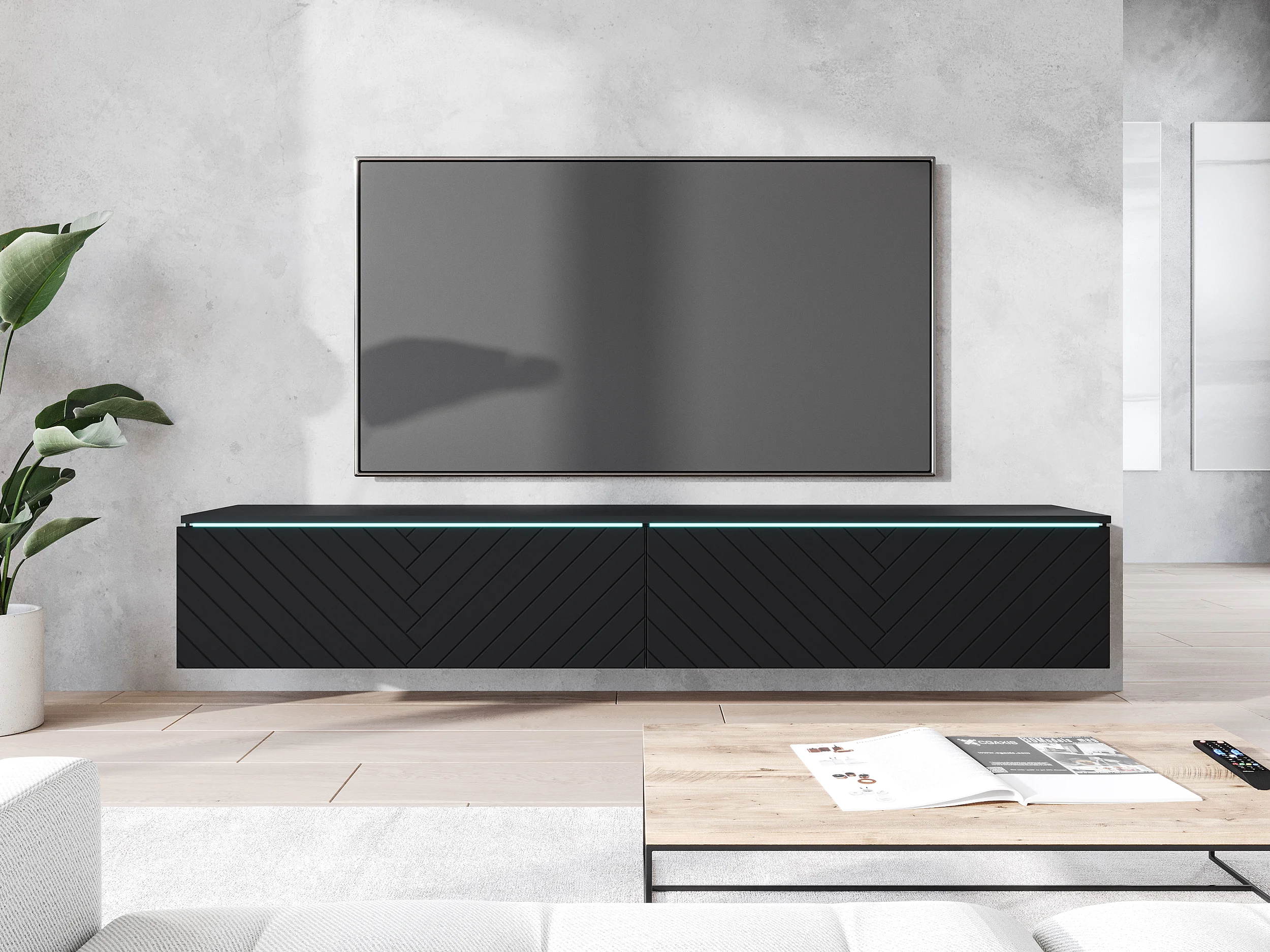Mobile TV - 180 cm - nero/nero grafite con motivo a spina di pesce - con LED - KANE