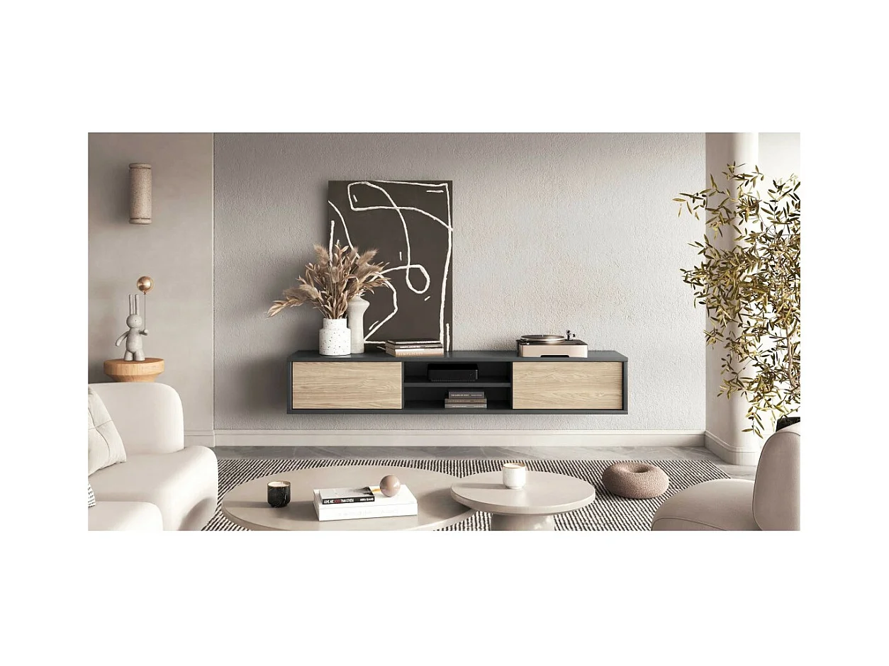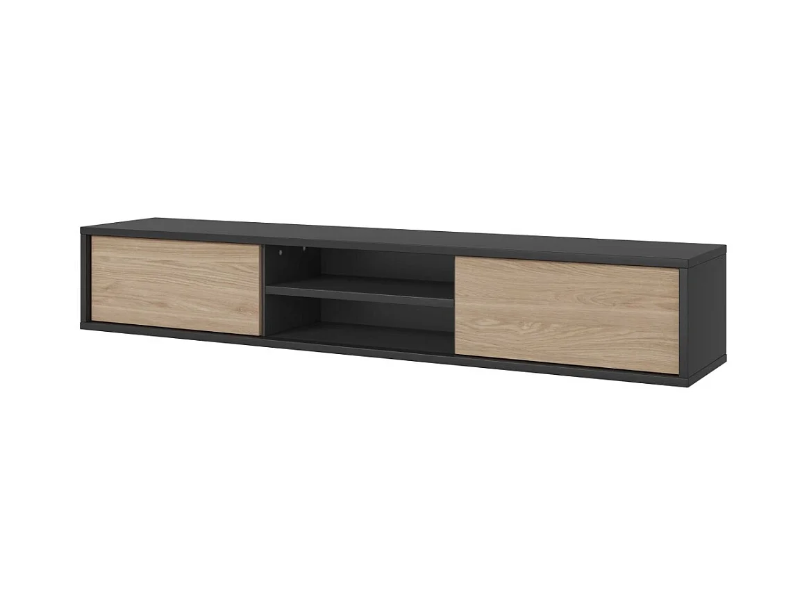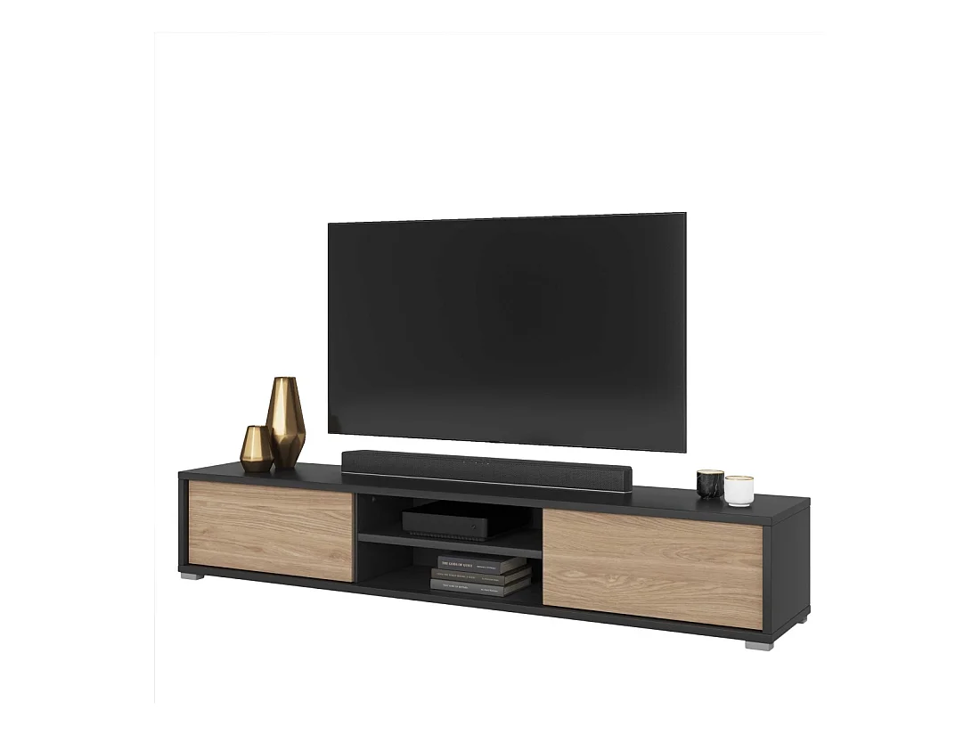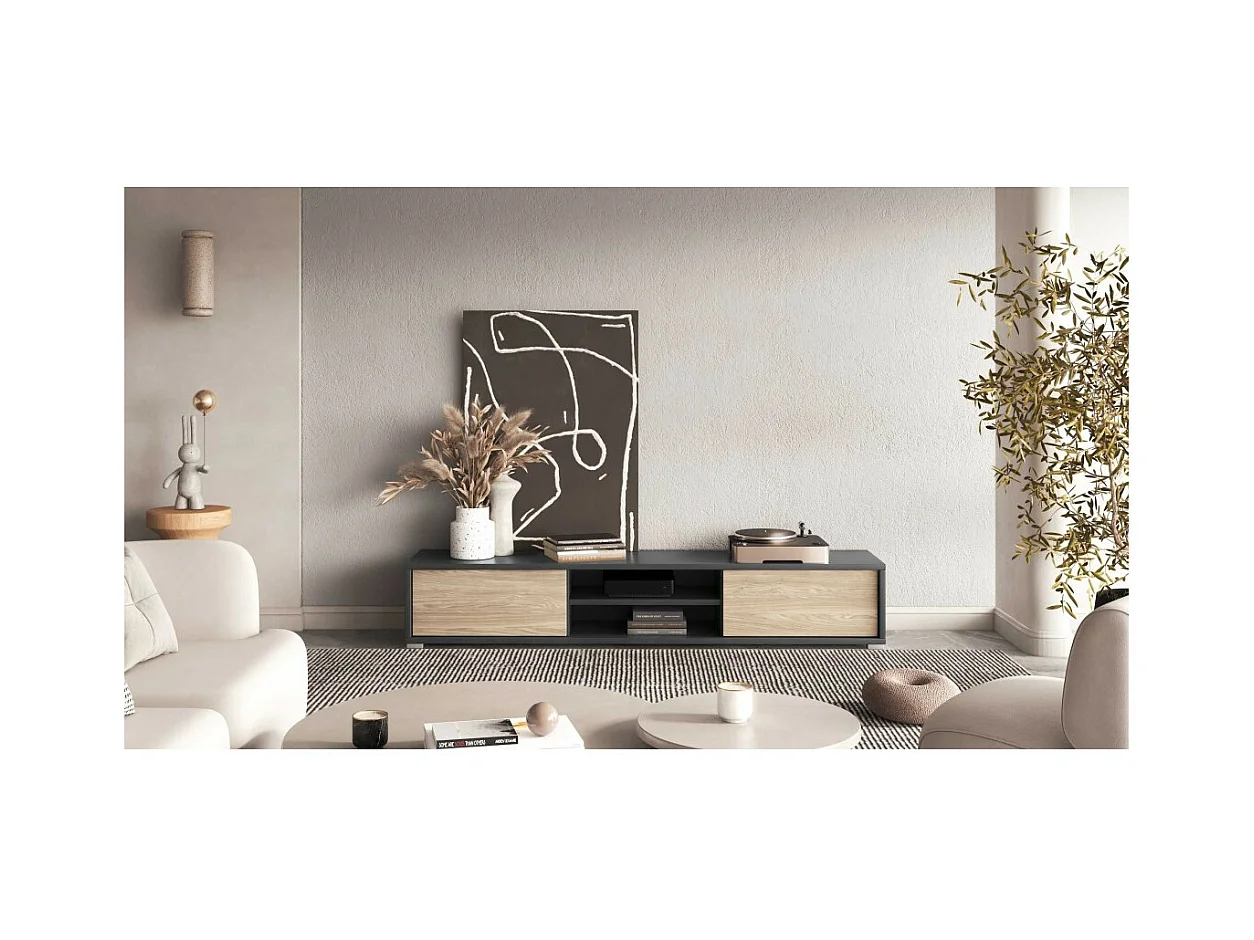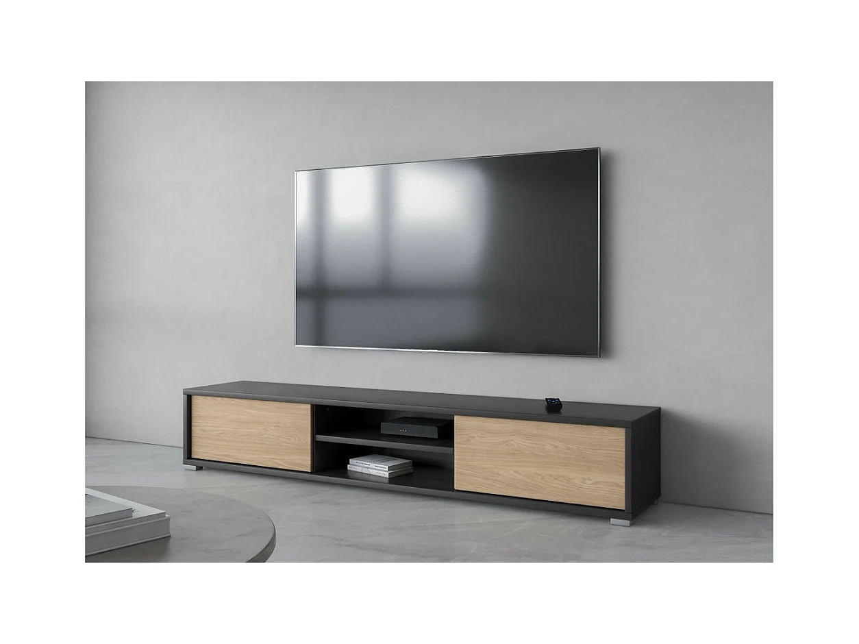 Mobile TV 180cm, 2 porte e 2 nicchie collezione MAANUM. Colore grigio e rovere chiaro.