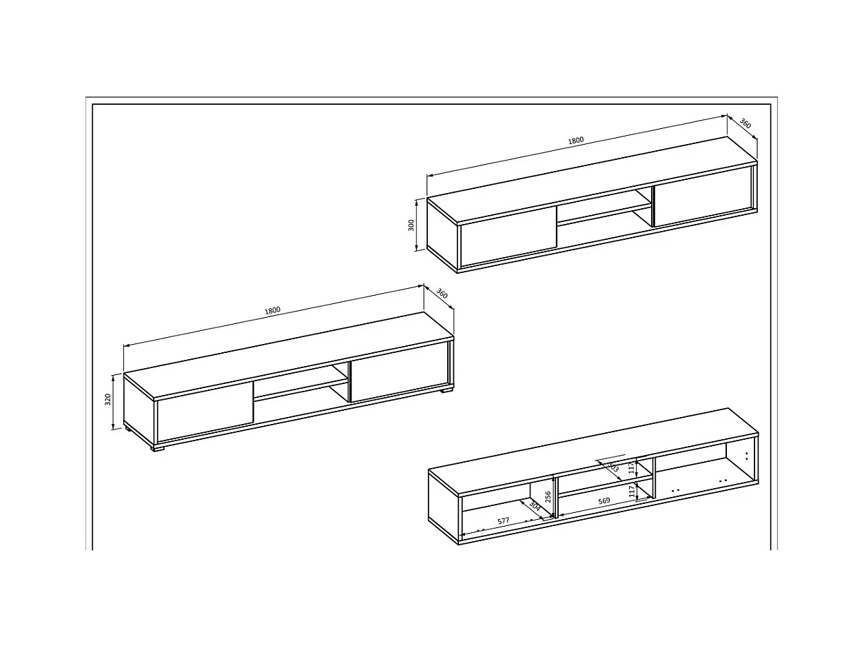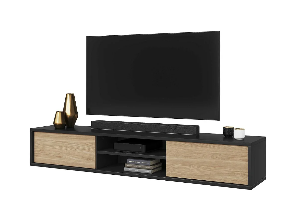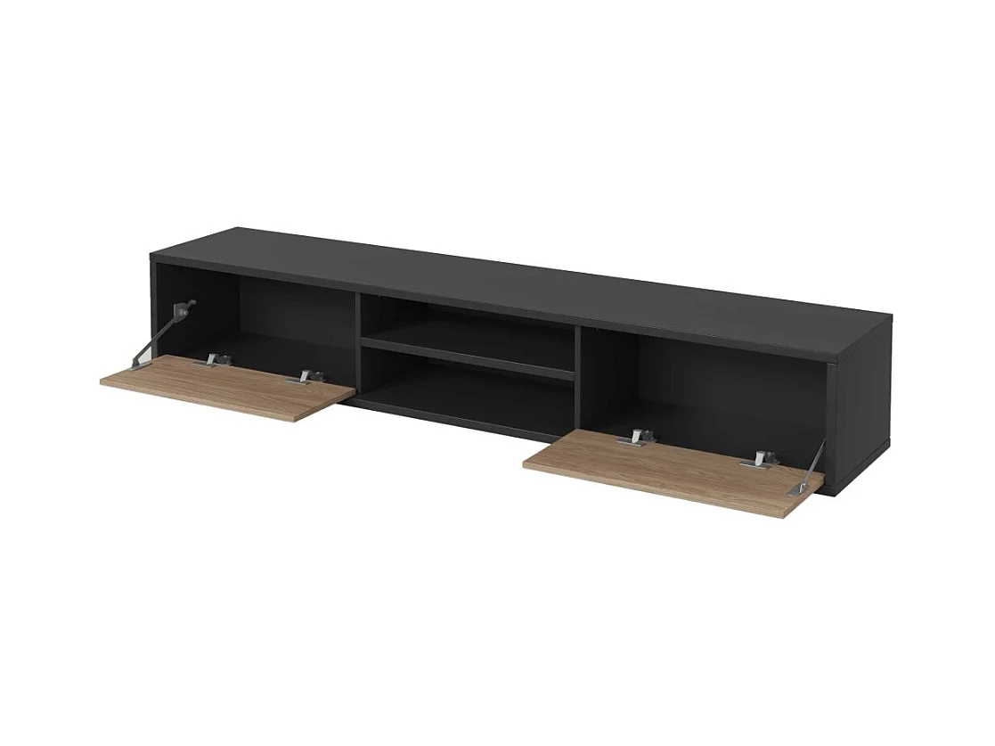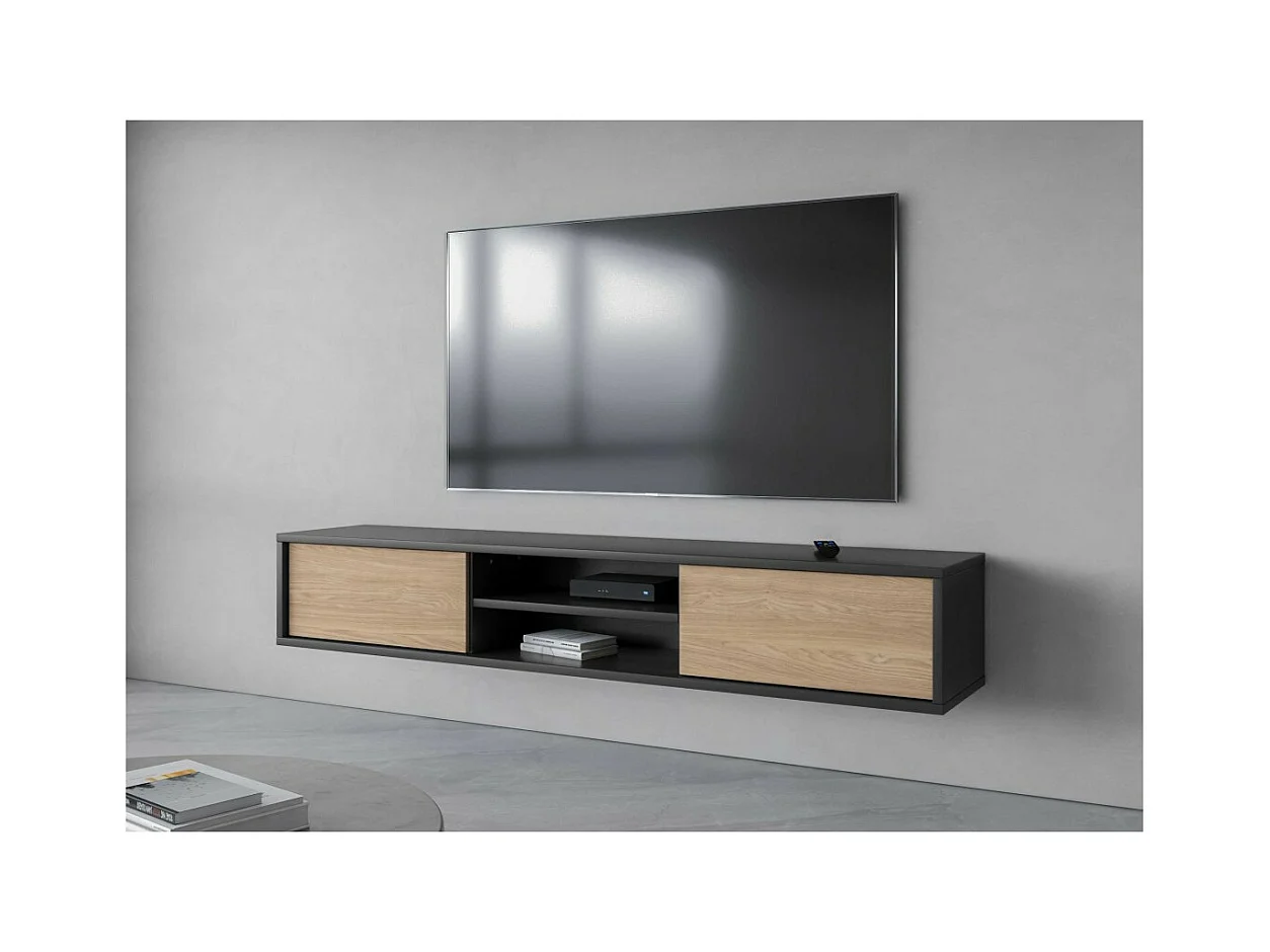 Mobile TV 180cm, 2 porte e 2 nicchie collezione MAANUM. Colore grigio e rovere chiaro.