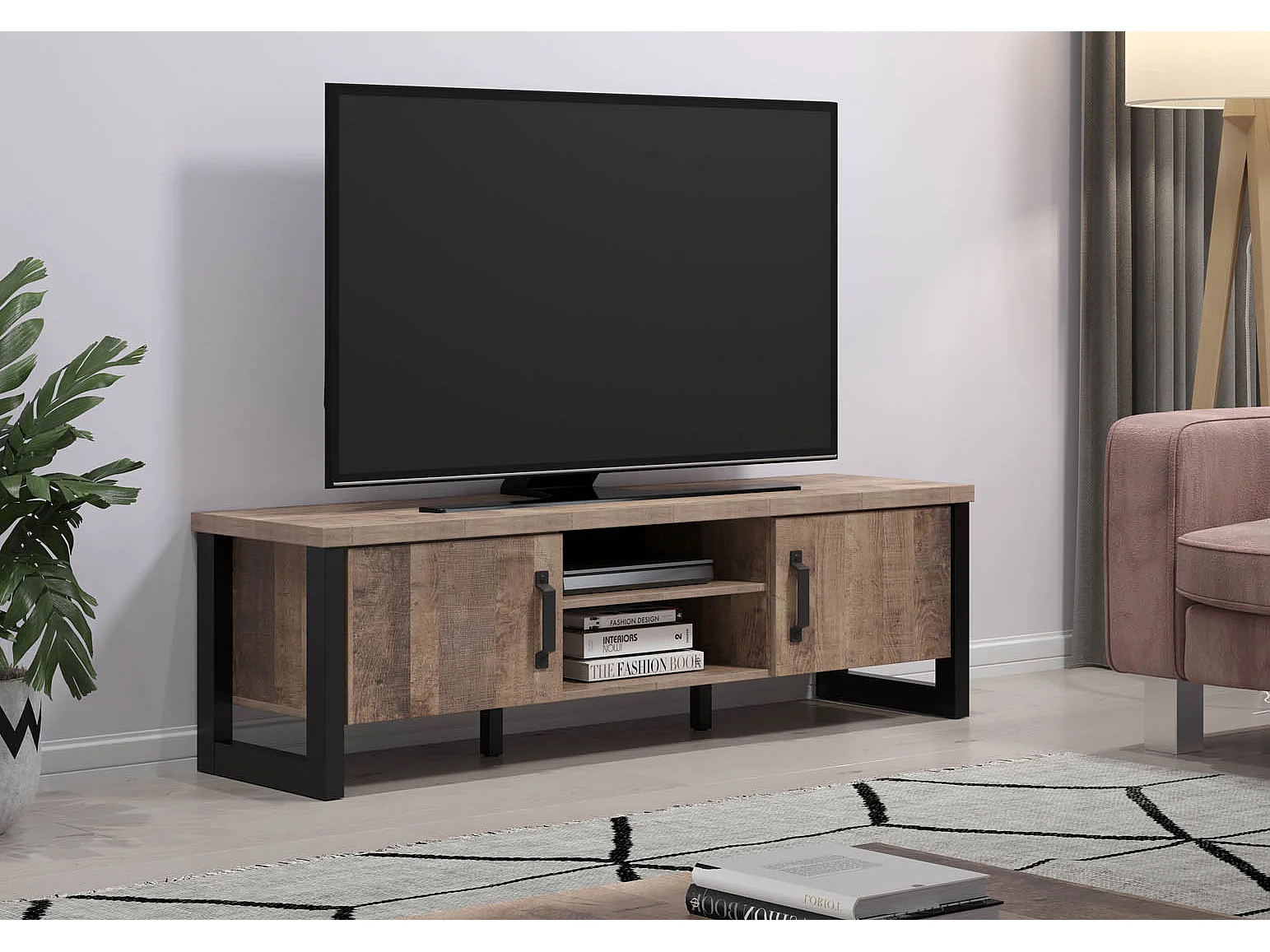 Mobile TV 2 ante, 2 nicchie e 2 aperture passacavi L166 cm - EMILE