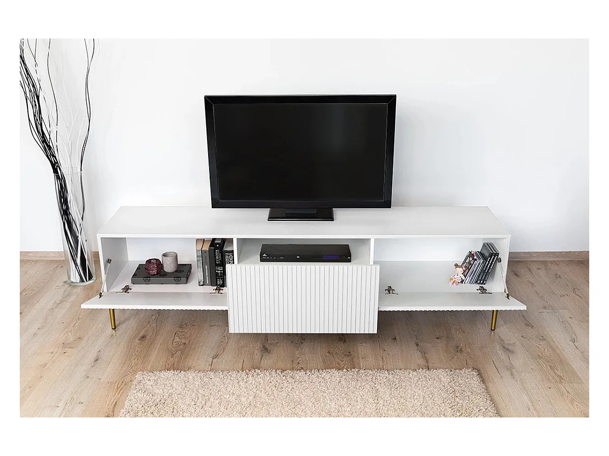Mobile tv 2 ante a ribalta 1 cassetto bianco piede oro 200x45 cm