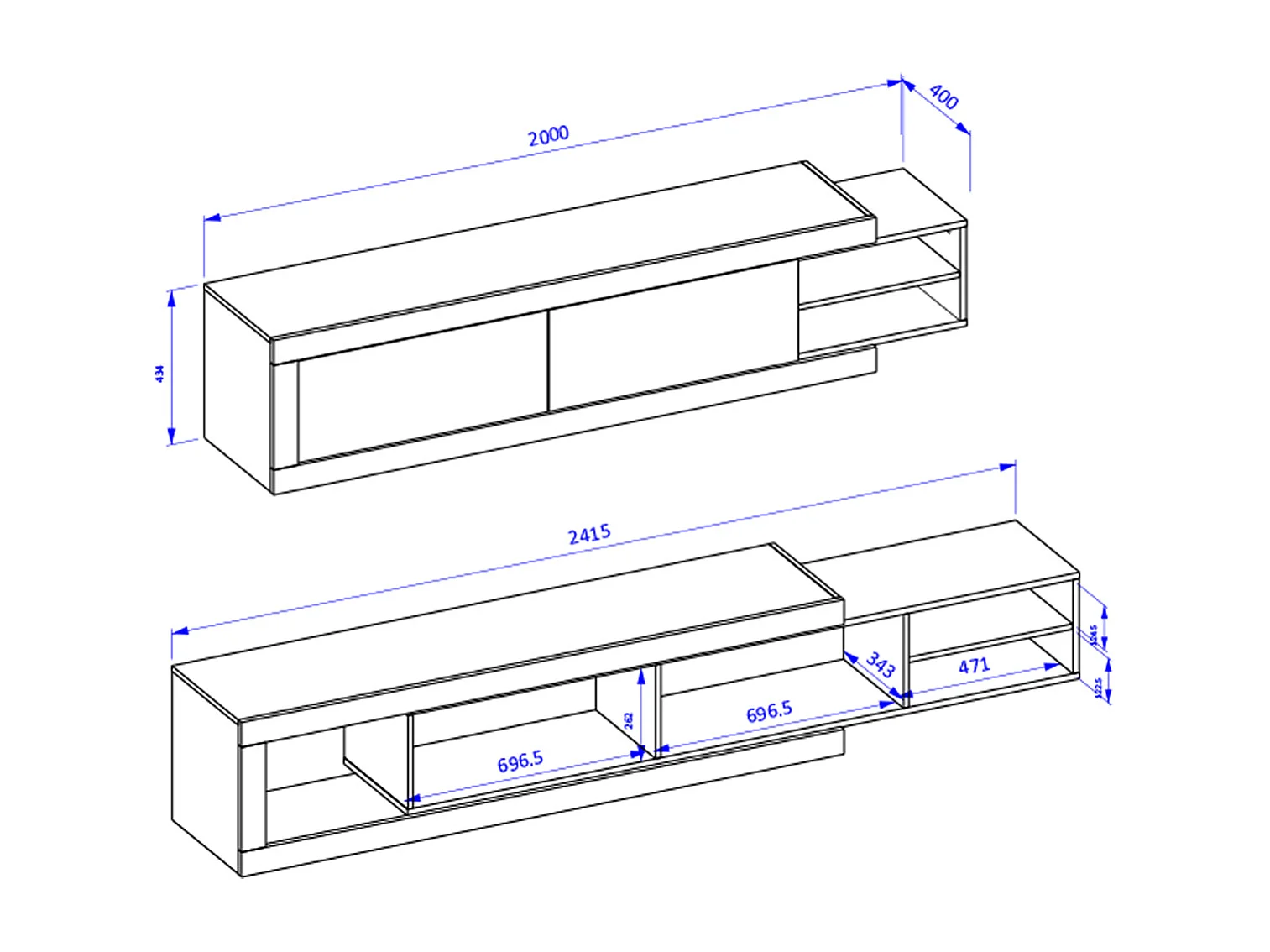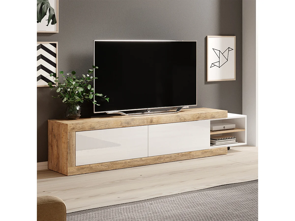 Mobile TV 2 ante Azior bianco e marrone 200cm