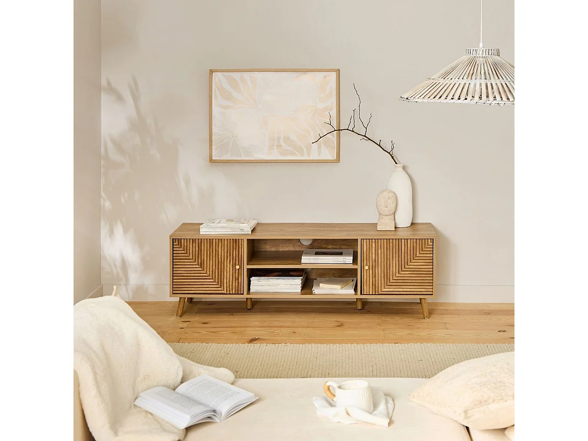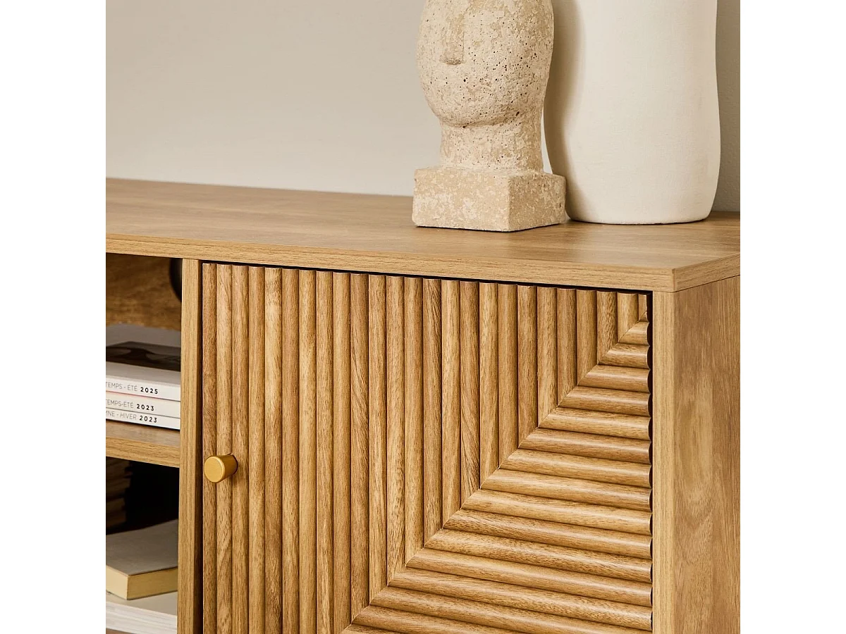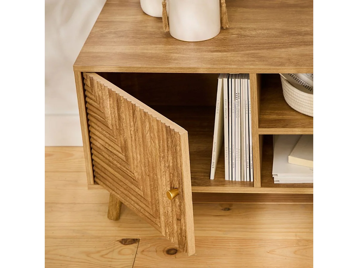 Mobile TV 2 ante con frontali effetto doghe a L, L140 cm - EDEN