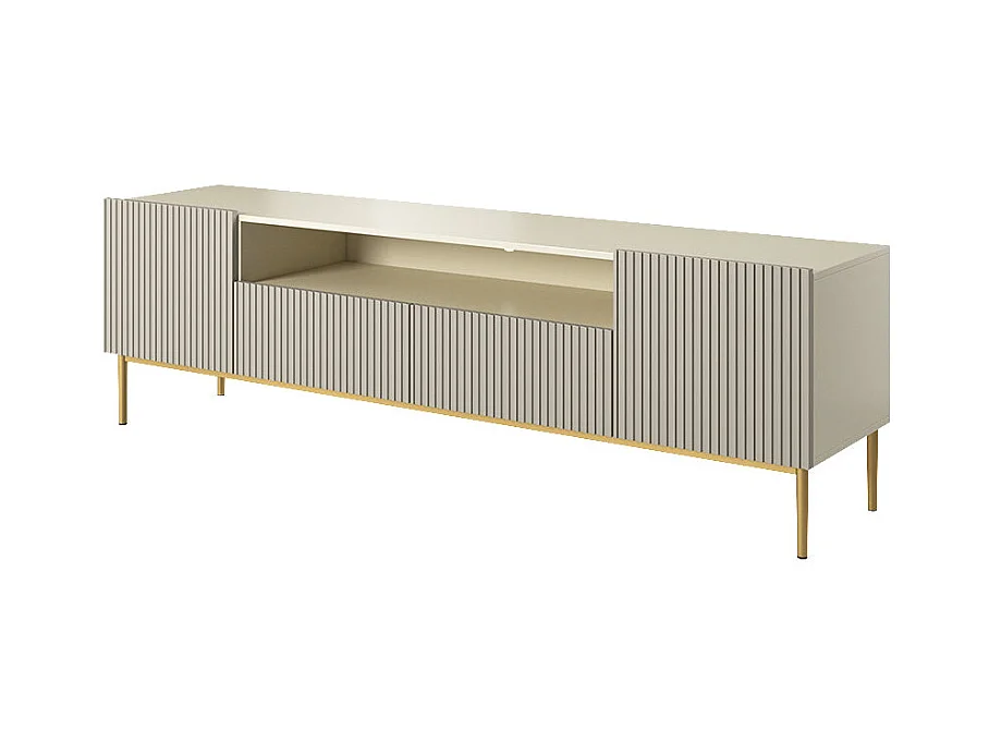 Mobile tv 2 ante e 2 cassetti cashmere con piede metallo oro 200x45 cm