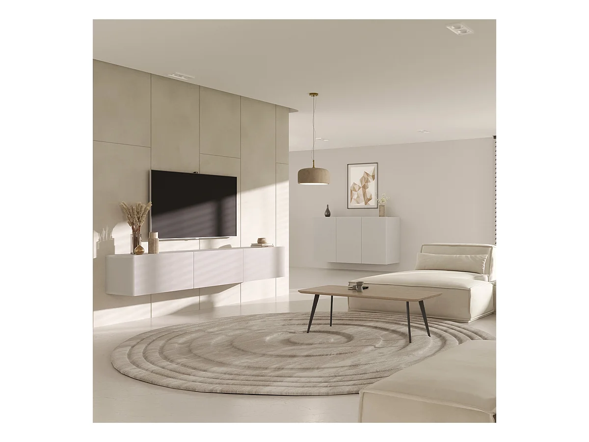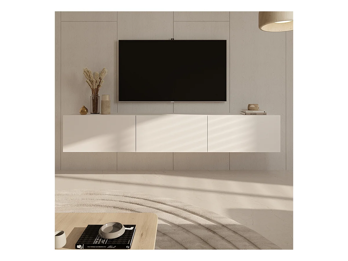 Mobile porta TV sospeso a 3 ante - 180 x 35 x 30 cm - LED - MDF e truciolare - Bianco e nero lucido