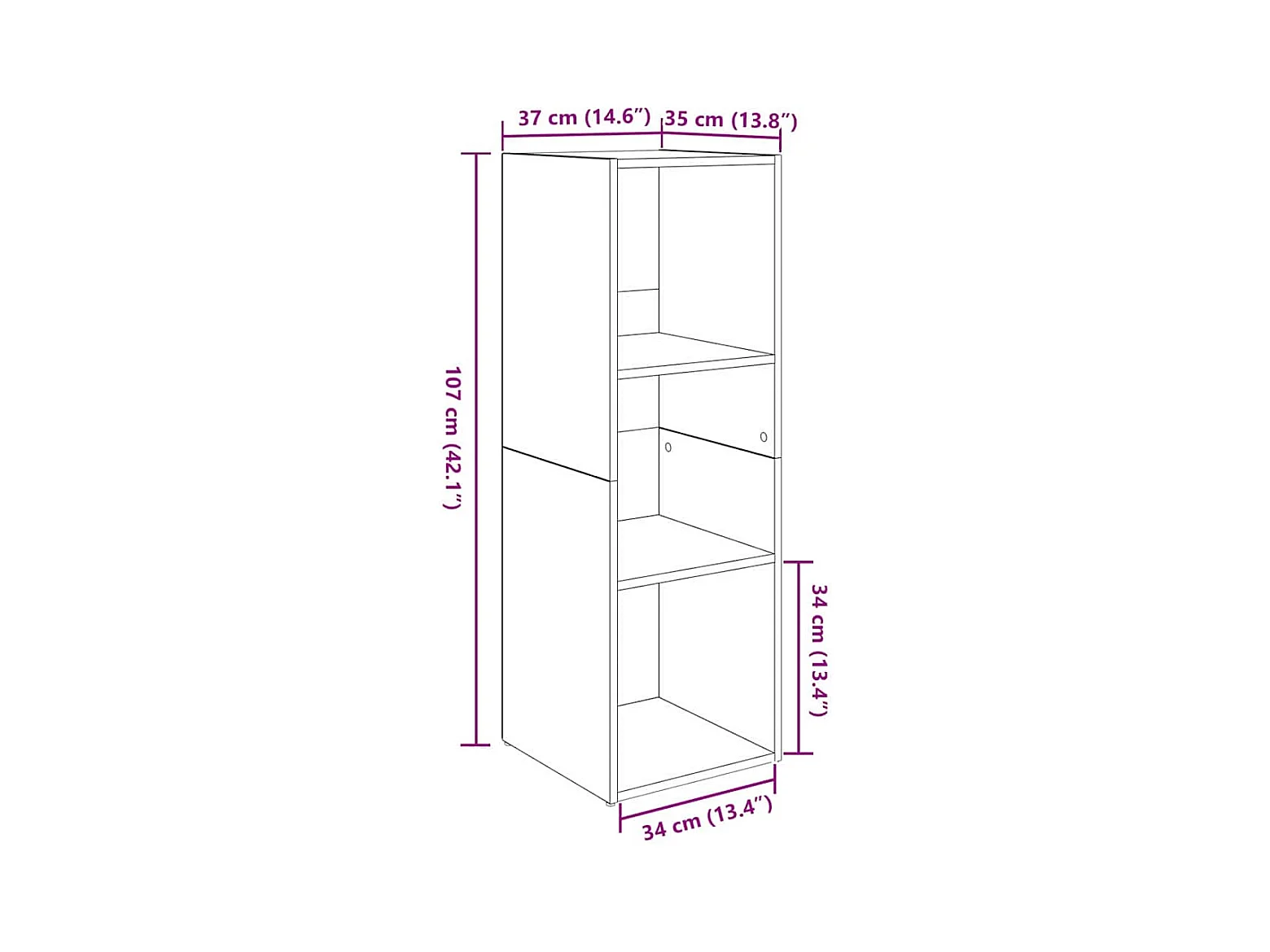 Mobile TV 4 pezzi, rovere lavorato a mano, 37 x 35 x 107,5 cm