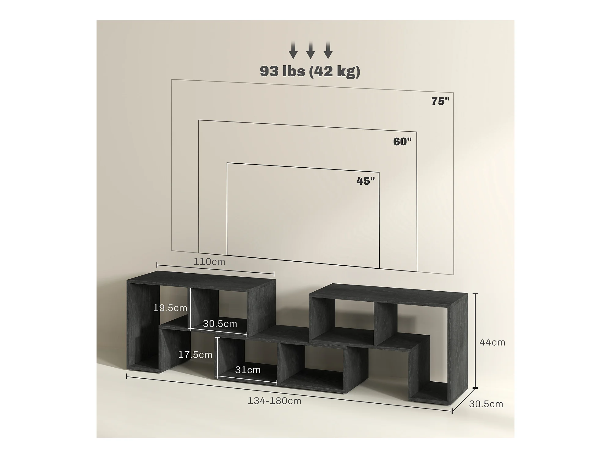 Mobile TV 60x180x45 cm nero noir