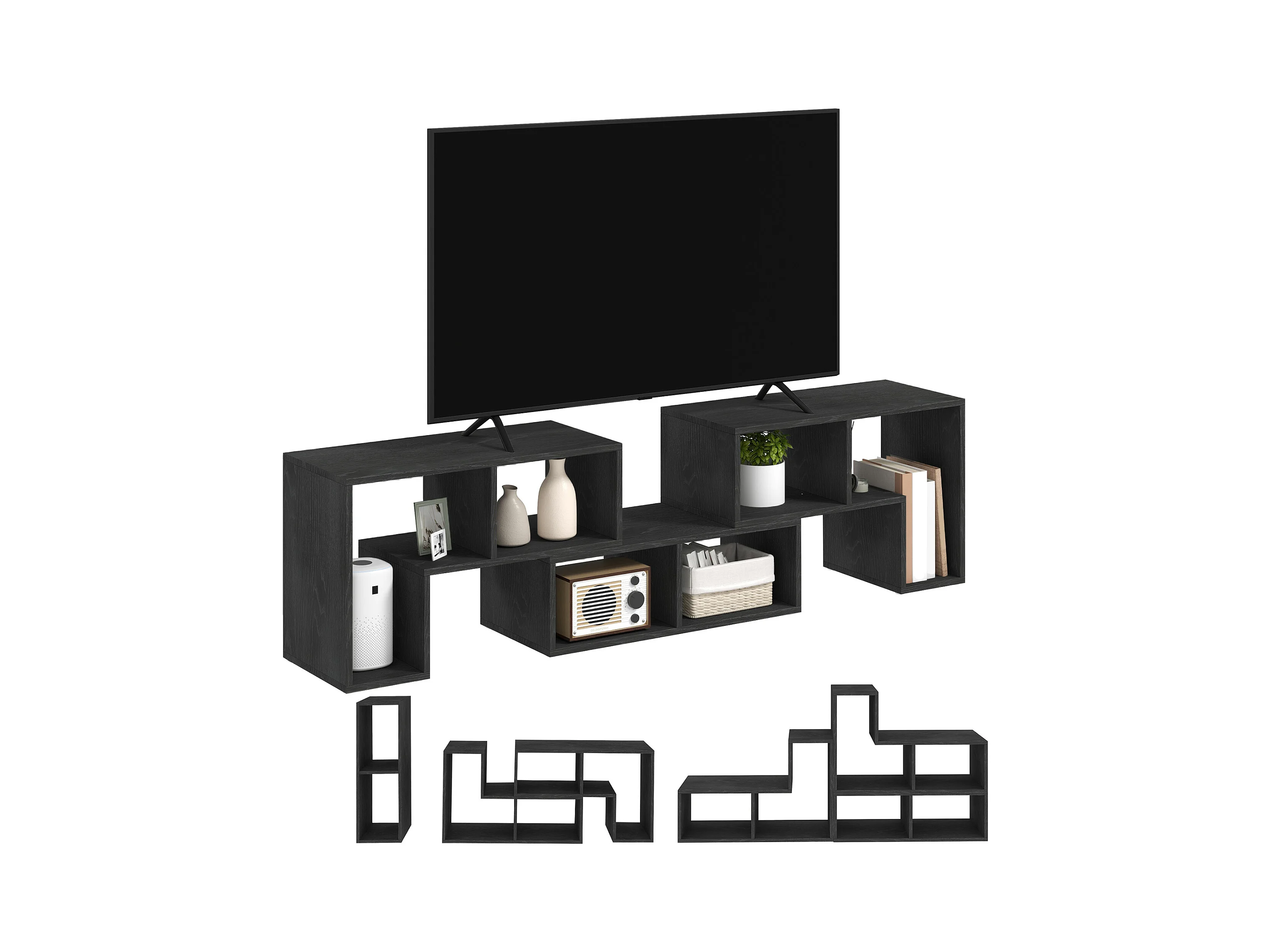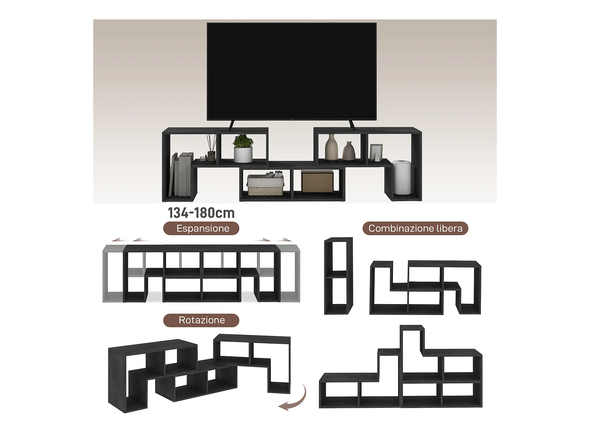Mobile tv 75  max modulabile a 6 ripiani totali in truciolato nero