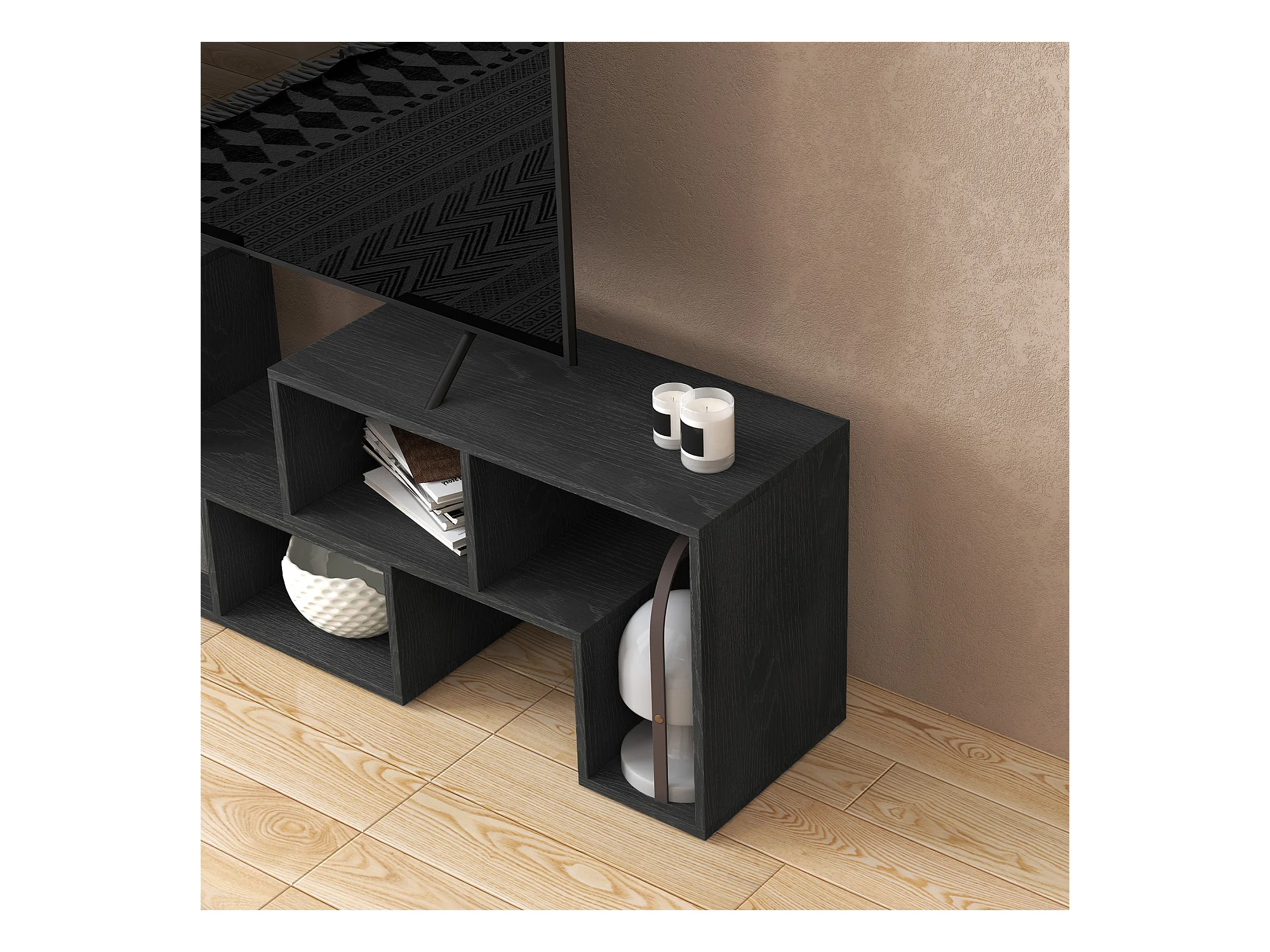 Mobile TV moderno 165 cm in legno con rangement luxe noir et o salon