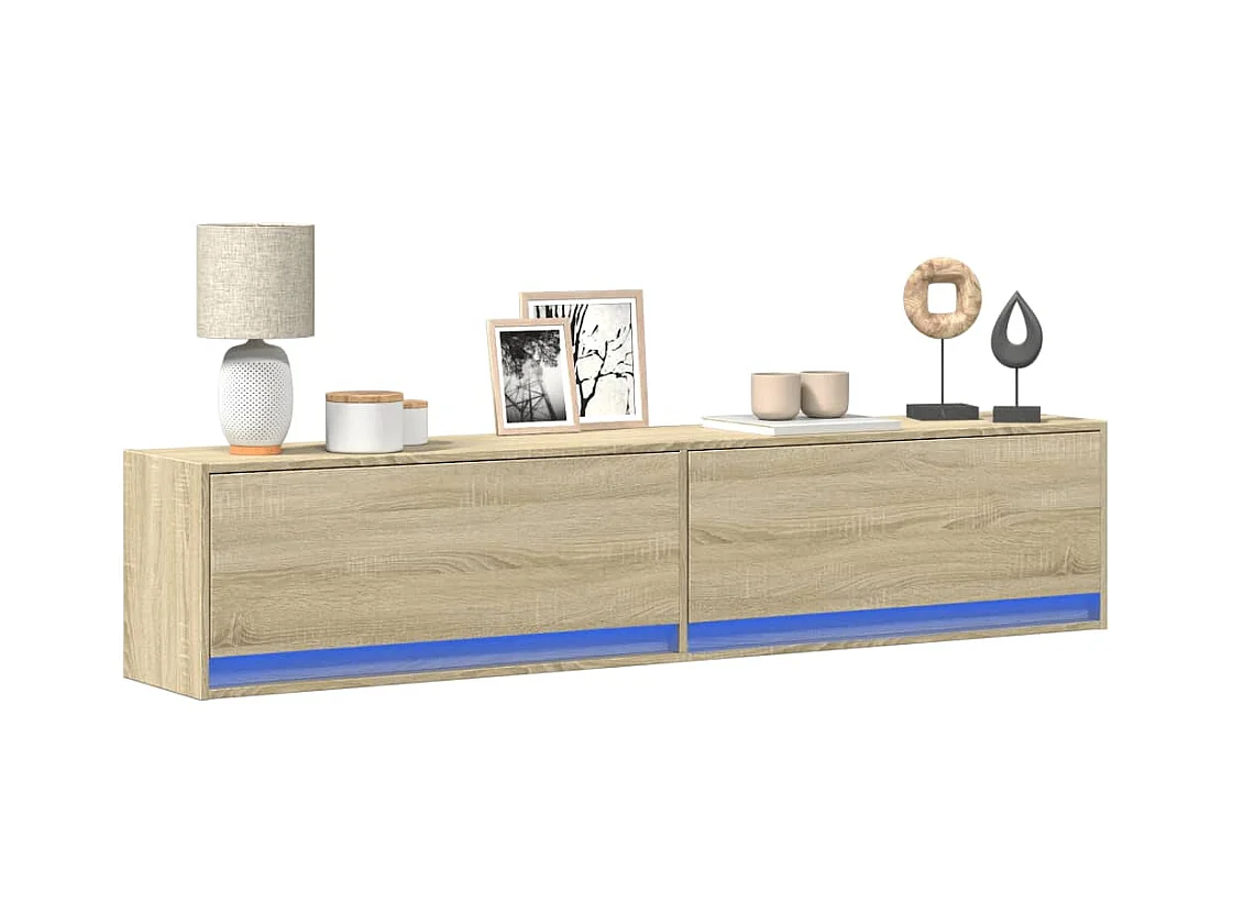 Mobile porta TV a parete con luci LED Rovere Sonoma 140x31x38 cm