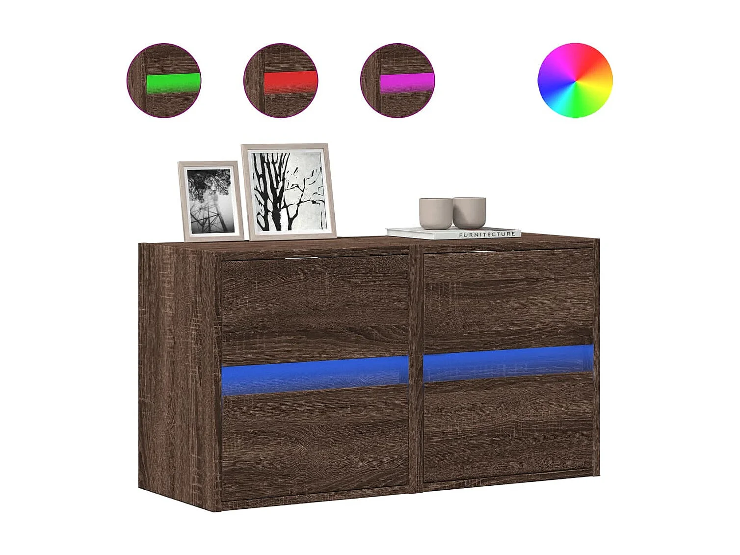 Mobile TV a parete scaffale multimediale credenza TV sala da pranzo soggiorno camera da letto luci LED 2 pezzi rovere 41 x 31 x 45 cm marrone 02_0029163