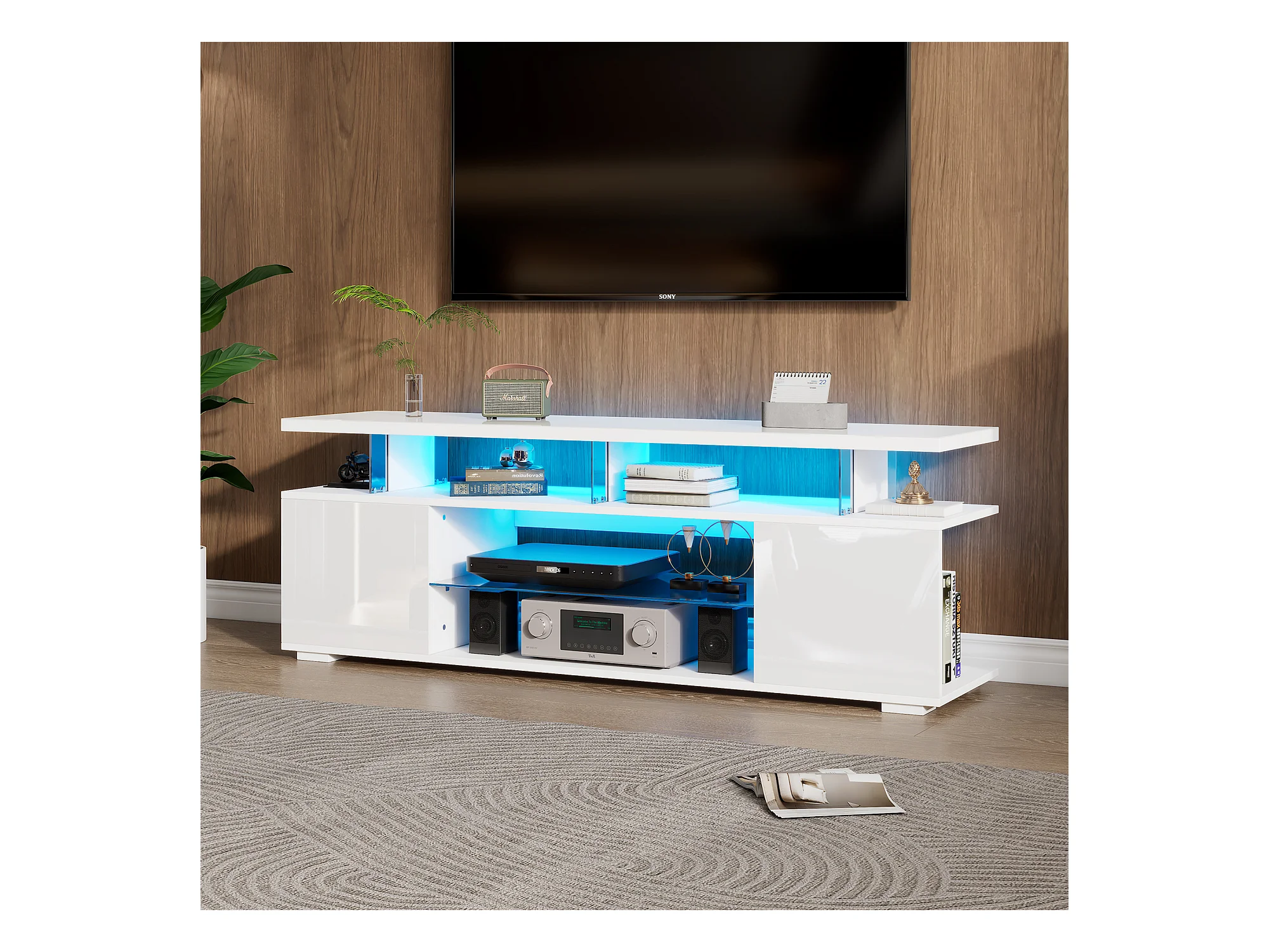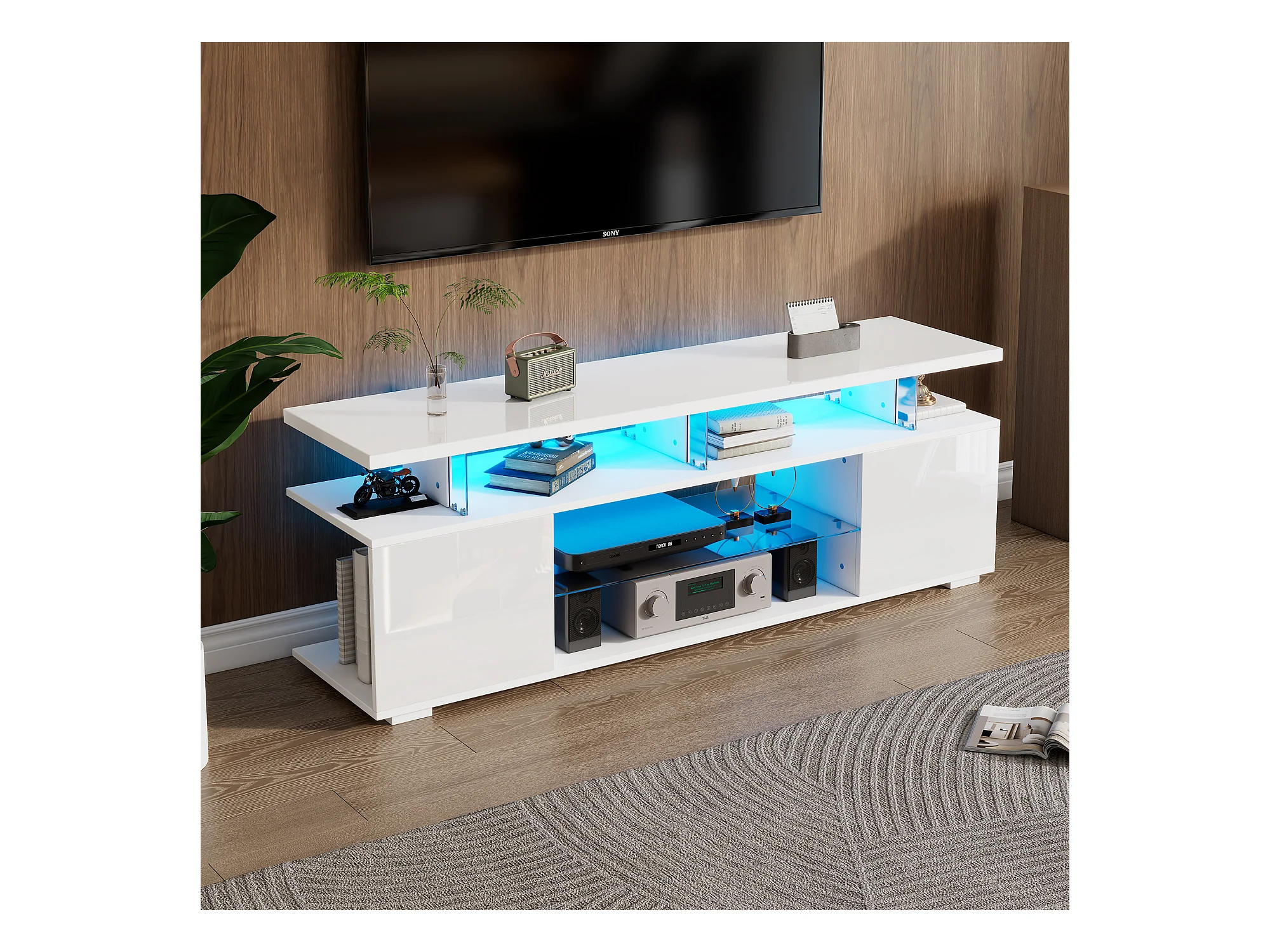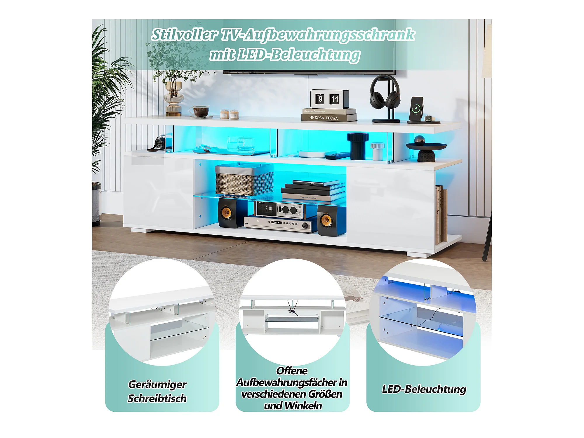 Mobile TV Bianco 150 cm LED Verre Trempé Rangement per TV 60 Pouces Salon
