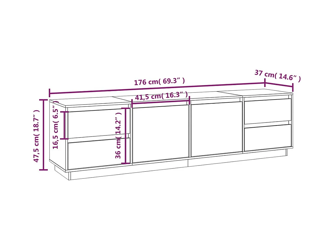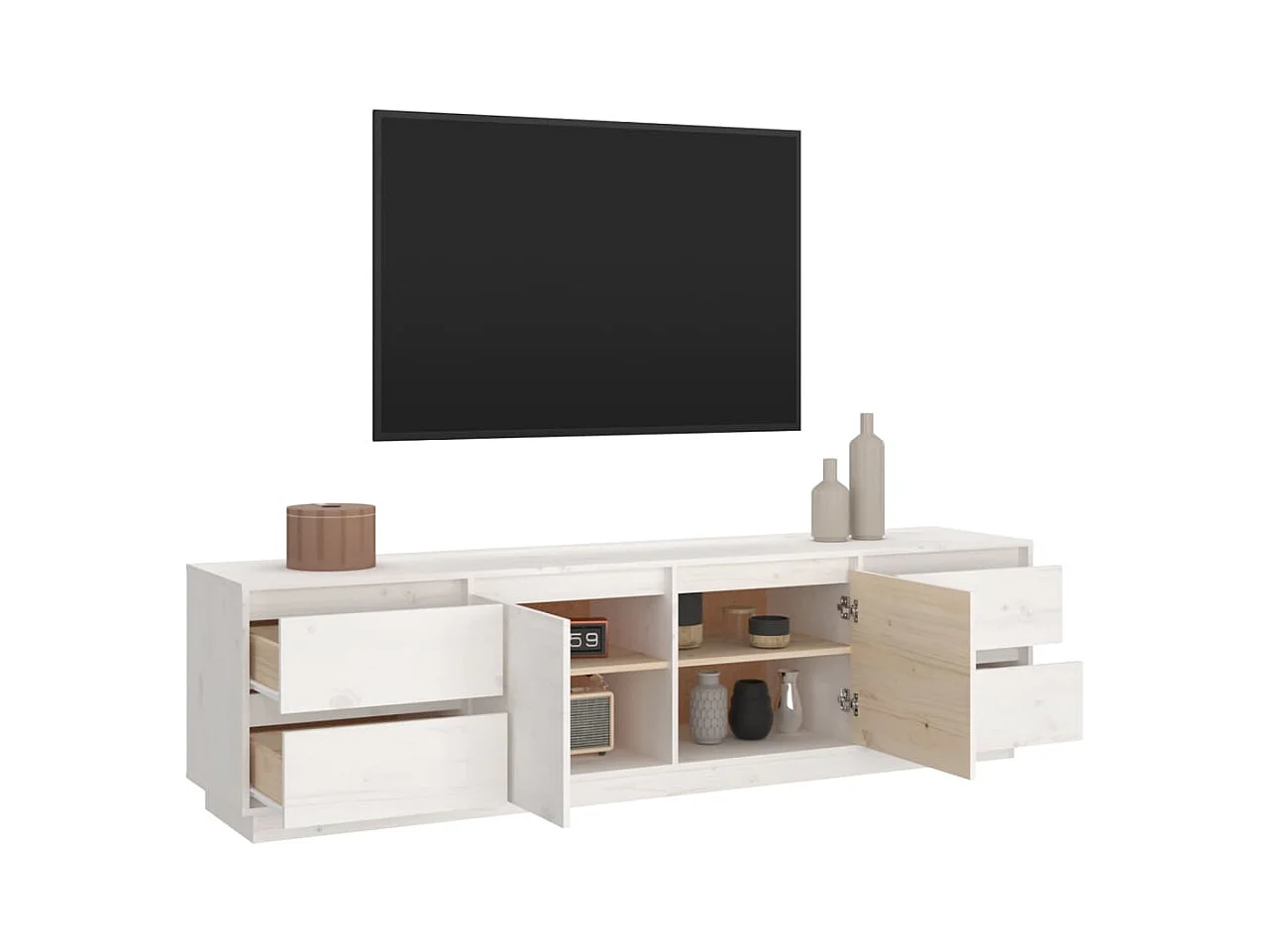 Mobile TV bianco 176x37x47,5 cm Legno massello di pino
