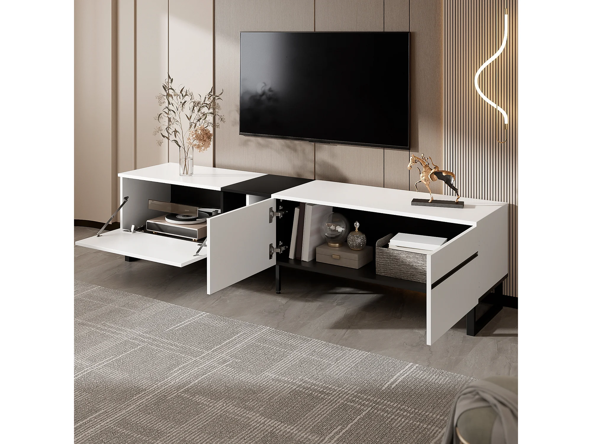 Mobile TV bianco 180cm con 3 ante - Legno PB - Colore bianco e nero