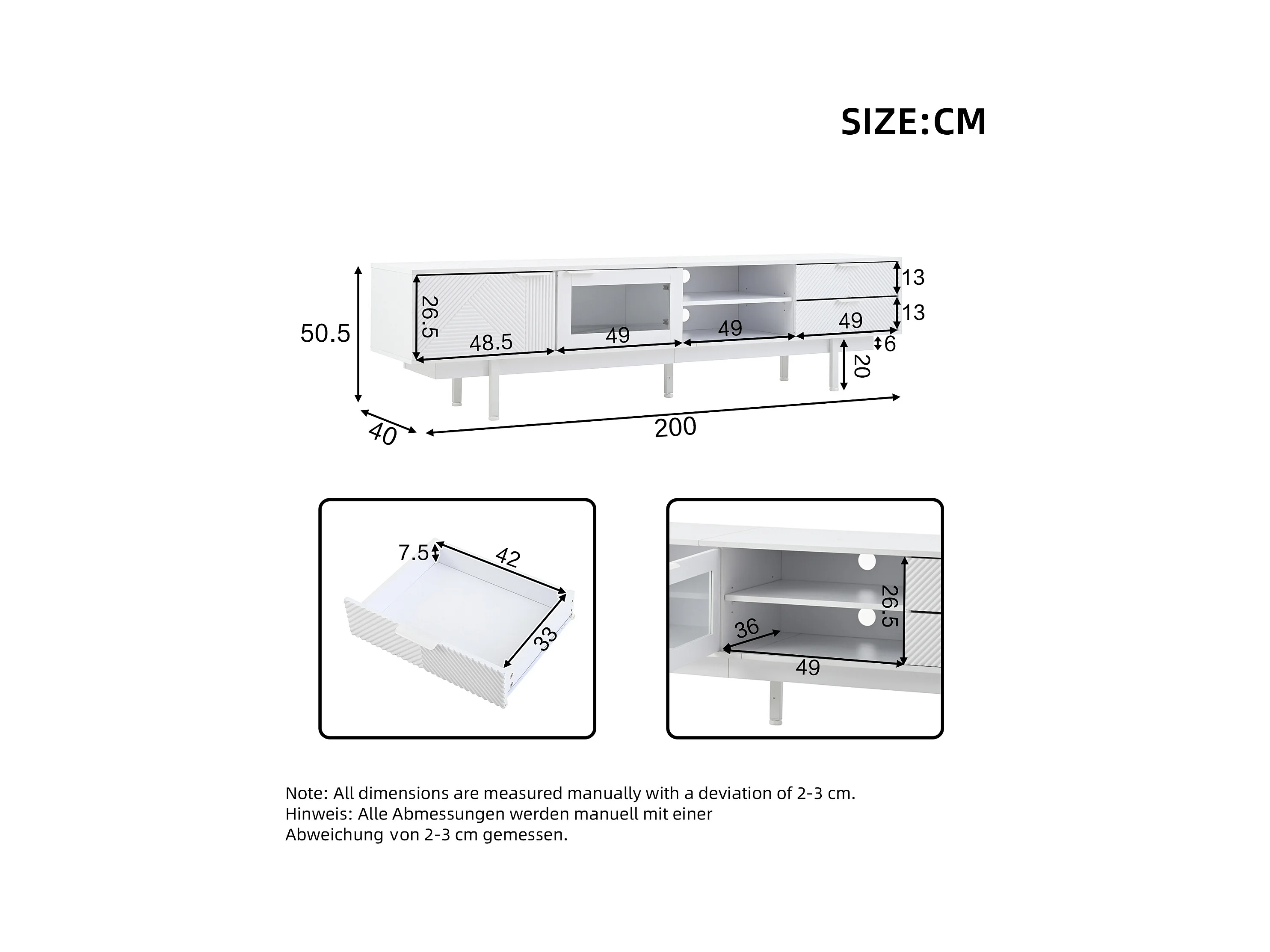 Mobile TV per soggiorno 160x40x40cm - Mobile TV bianco con 4 gambe di supporto - adatto per TV da 65 pollici
