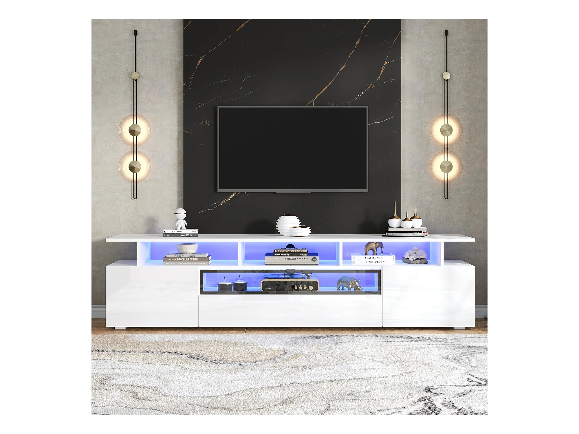 Mobile TV bianco con 2 ante, LED e 1 cassetto, spazio di archiviazione multistrato 180x38x45cm